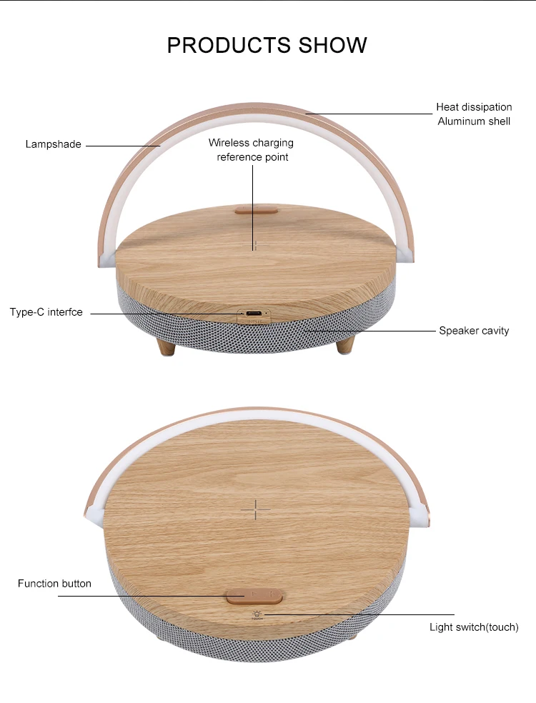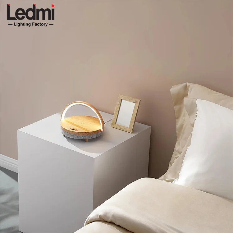 2021 популярные деревянные светодиодный светильник Bluetooth SpeakerWireless зарядное устройство Зарядка держатель 10 Вт высокой мощности Мощность быстрой зарядки стенд громкой связи
