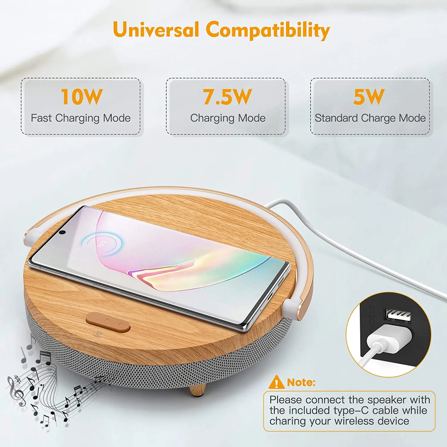 FeaturesWireless charging bluetooth speaker