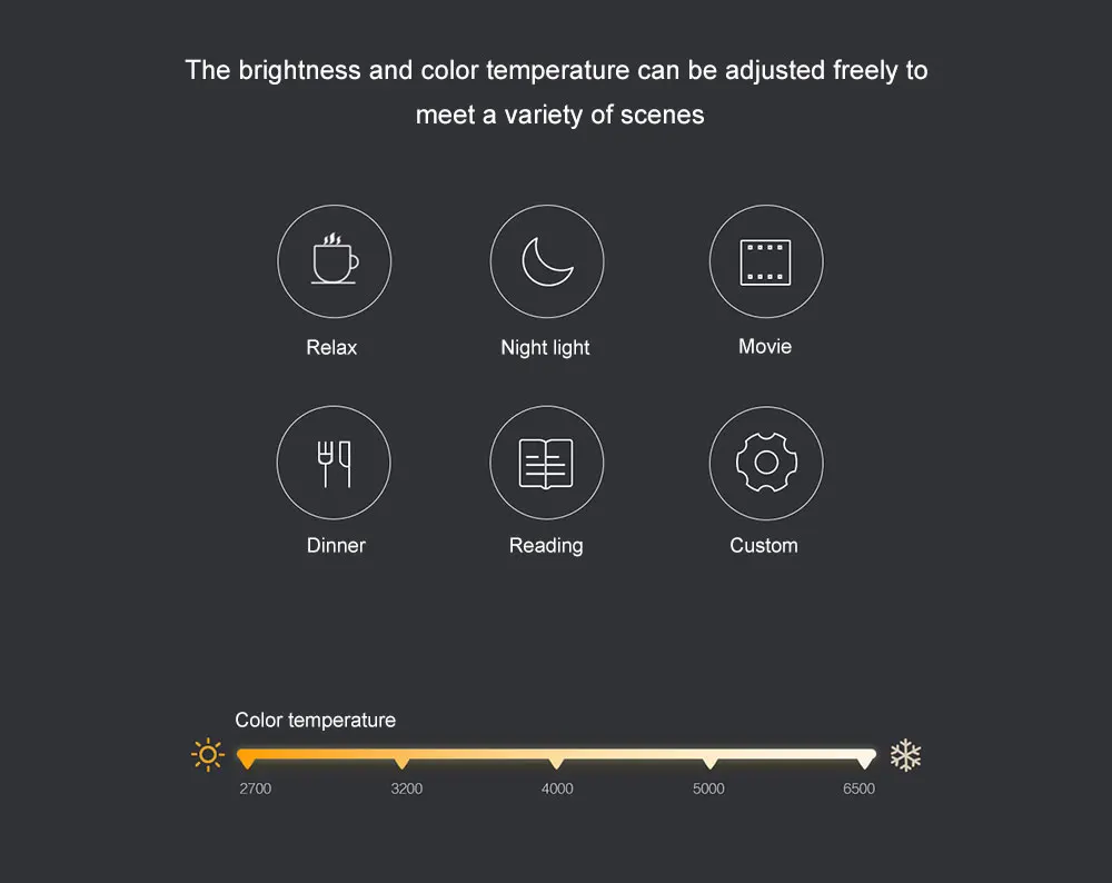 Светодиодный светильник высокого качества полностью защищен. В то же время, цветовая температура в 1700K и 6500K, 1600 миллионов цветов на выбор2. Свободно регулировать яркость цветаМожно регулировать яркость в соответствии с вашими потребностями. Пусть светильник изменится с вашими потребностями. (5300K выше освещение обеспечивает лучшую концентрацию)3. Подключение WiFiВстроенный WiFi модуль, вы можете подключиться к Wi-Fi без шлюза и умное управление через мобильный телефон4. Настройка Lauguage APPИзмените язык, установленный на вашем телефоне, на английский, а затем загрузите приложение Mijia, он также изменит язык приложения на английский5. 10 Вт 800 люменов (Примечание: старая версия 600 люменов) это новая версия10 Вт ультра-низкой мощности может обеспечить 800 люменов яркости6. Срок службы 11 летСветильник в среднем на 9000 часов снижается всего на 8%7. Поддержка: iPhone, iPad, iPod, Android 4,48. Совместимость с системой: Apple iOS, Android 4,4 или выше