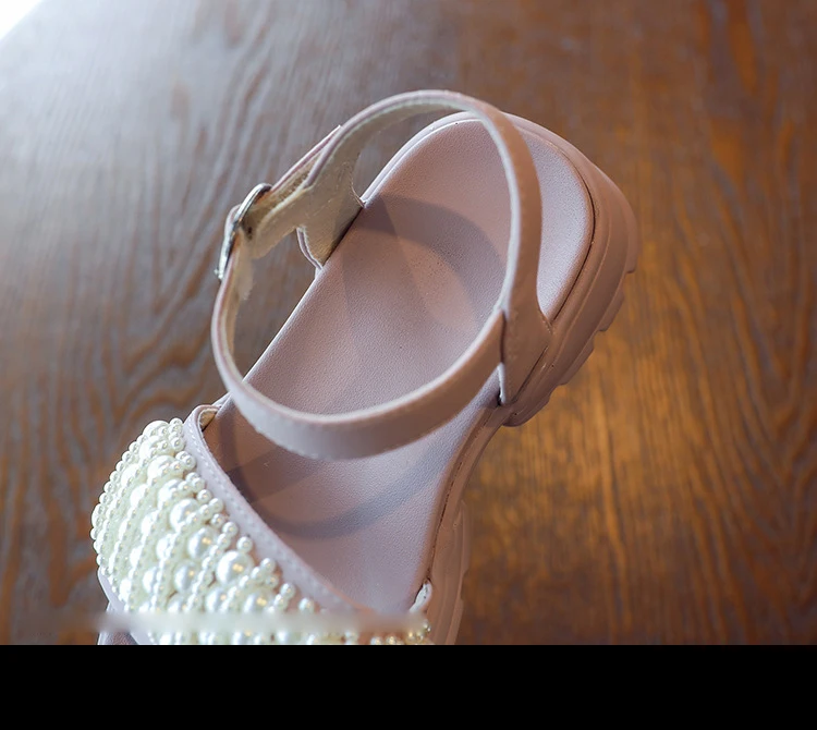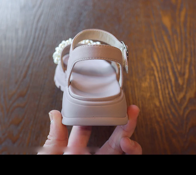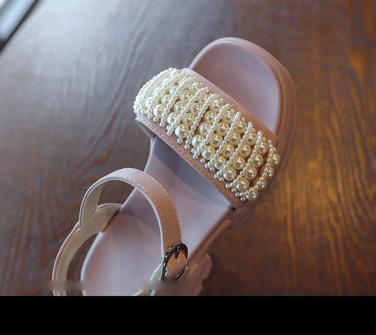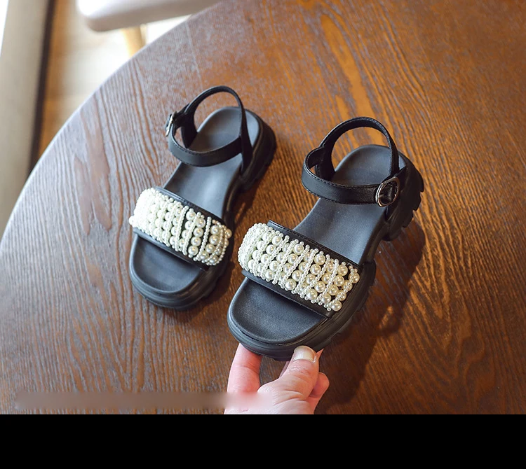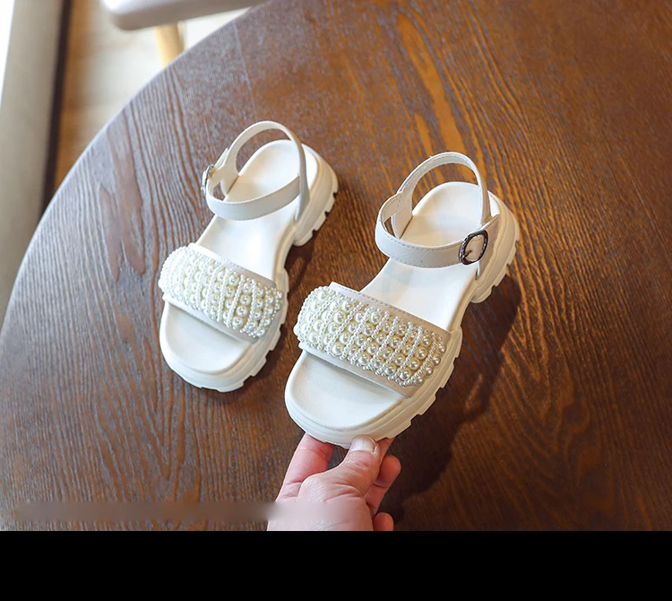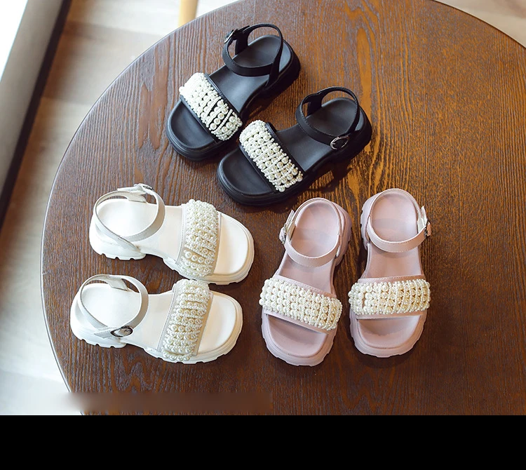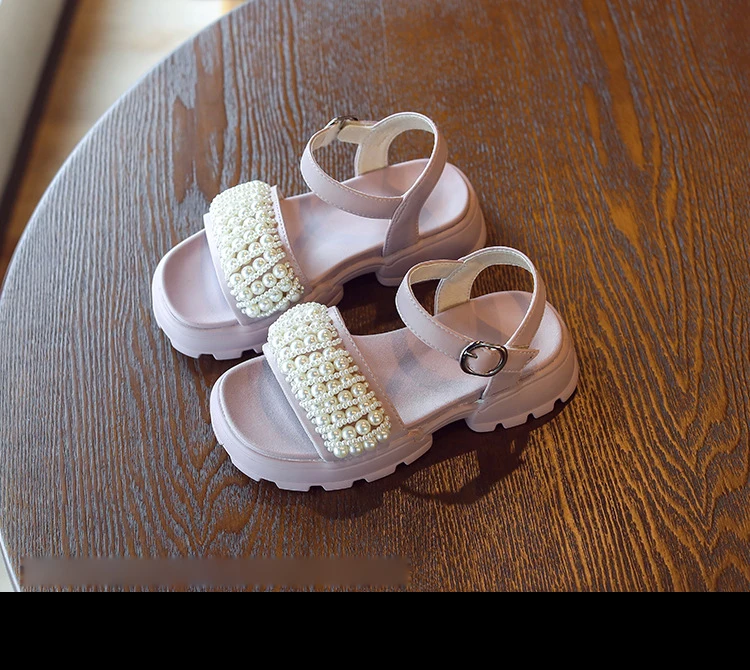 Летние детские сандалии принцессы; Детская брендовая обувь с жемчужинами; Пляжные сандалии для маленьких девочек; Модельные мягкие модные сандалии на плоской платформе; Новинка