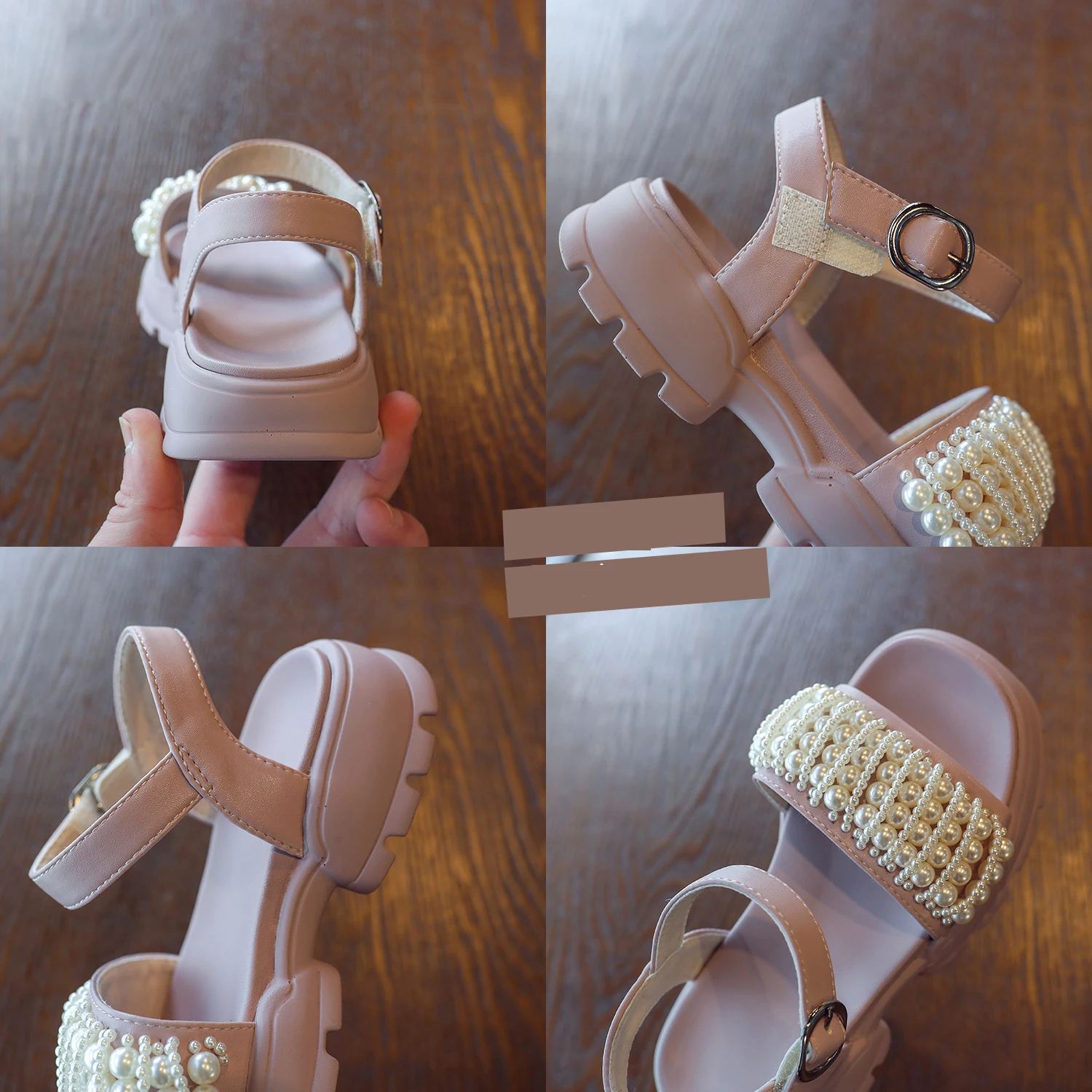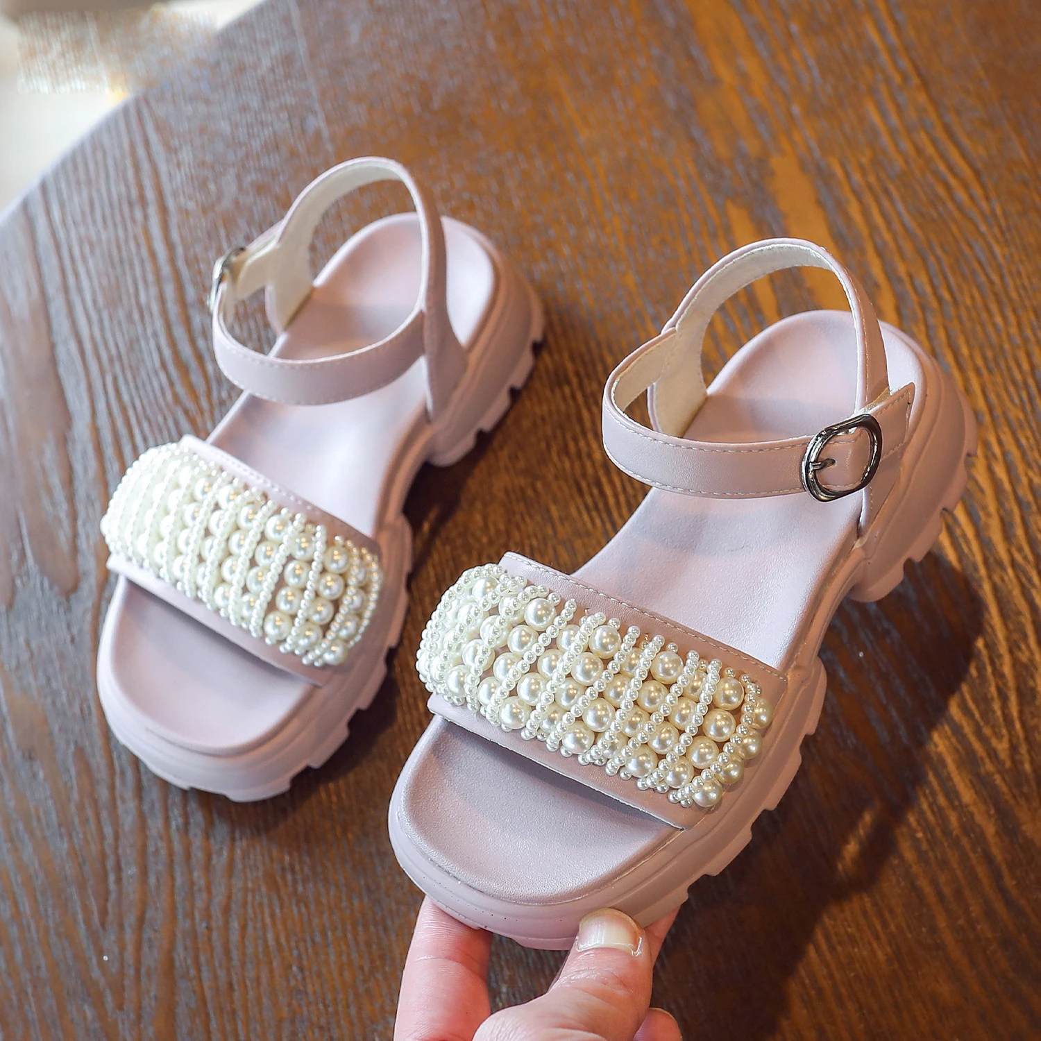 Летние детские сандалии принцессы, детская брендовая обувь с жемчугом, пляжные сандалии для маленьких девочек, Классические мягкие модные сандалии на платформе, Новинка