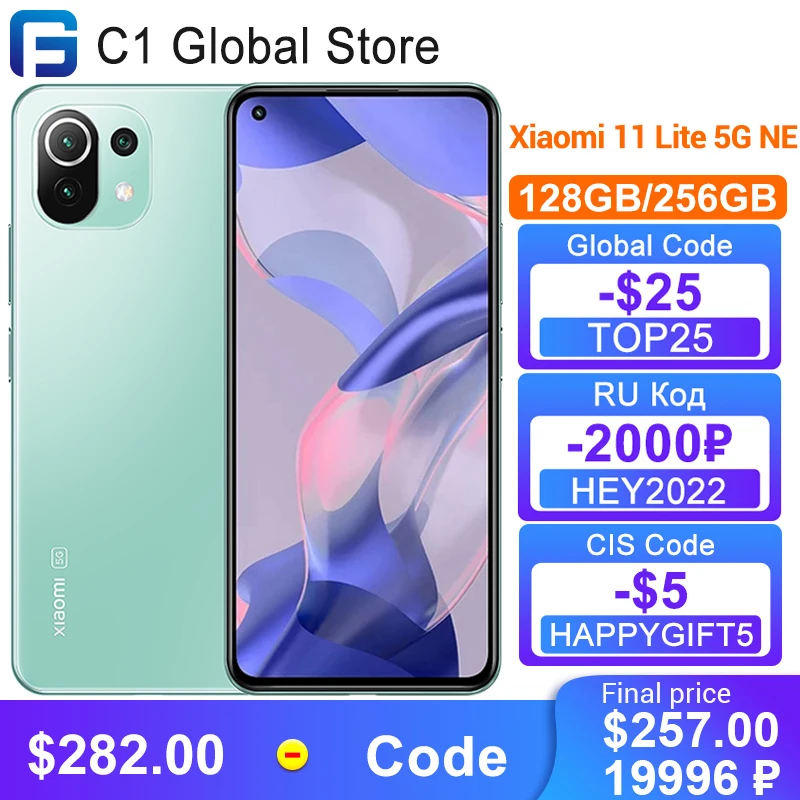 Смартфон Xiaomi 11 Lite глобальная версия дюйма, 5G ГБ128 ГБ, NFC, Восьмиядерный процессор Snapdragon 256G, камера 64 мп, AMOLED, DotDisplay, 778 дюйма
