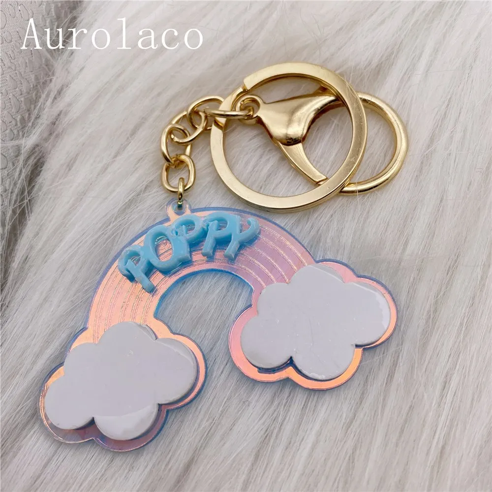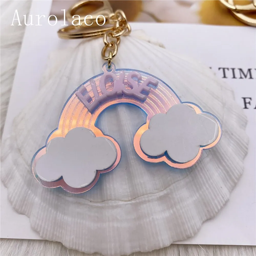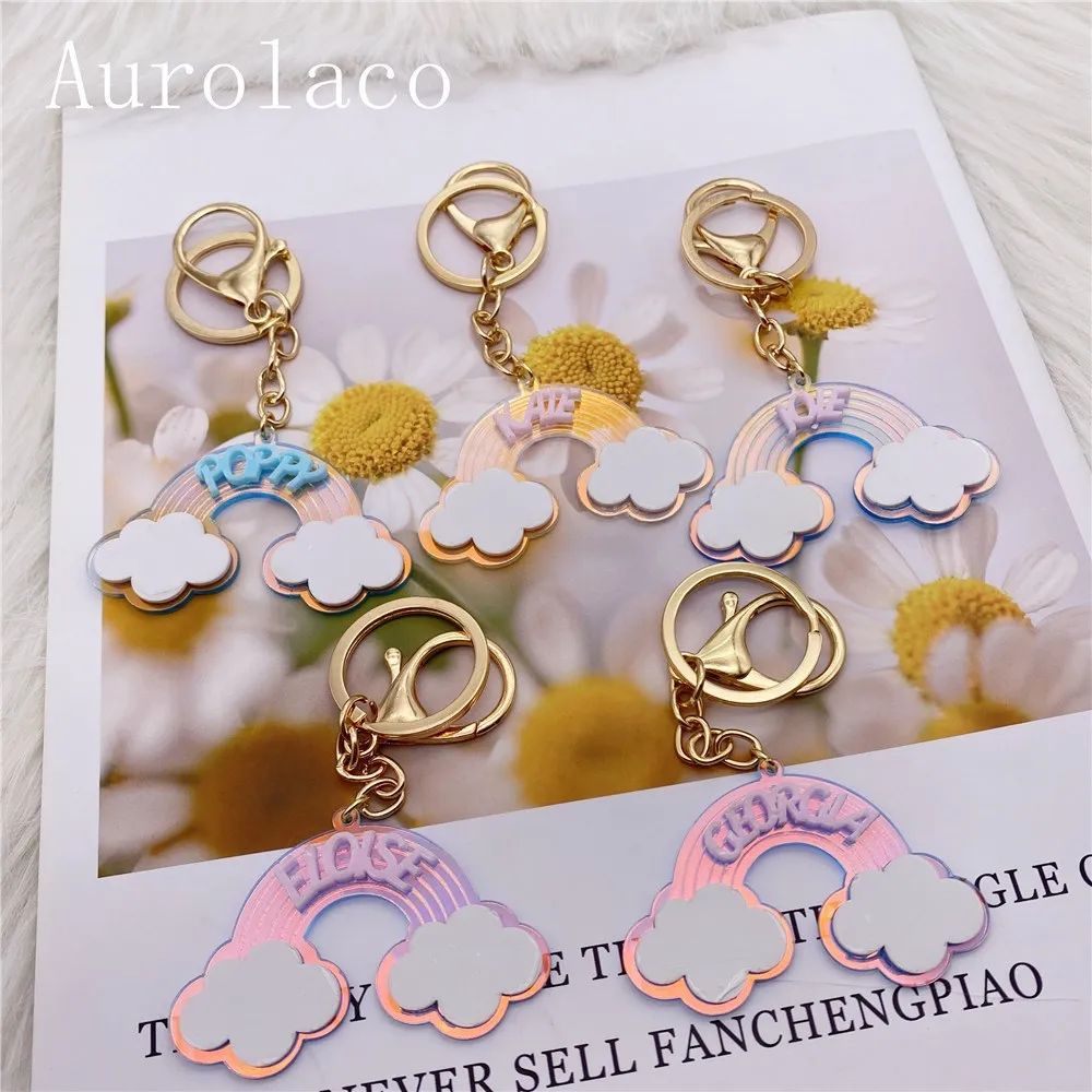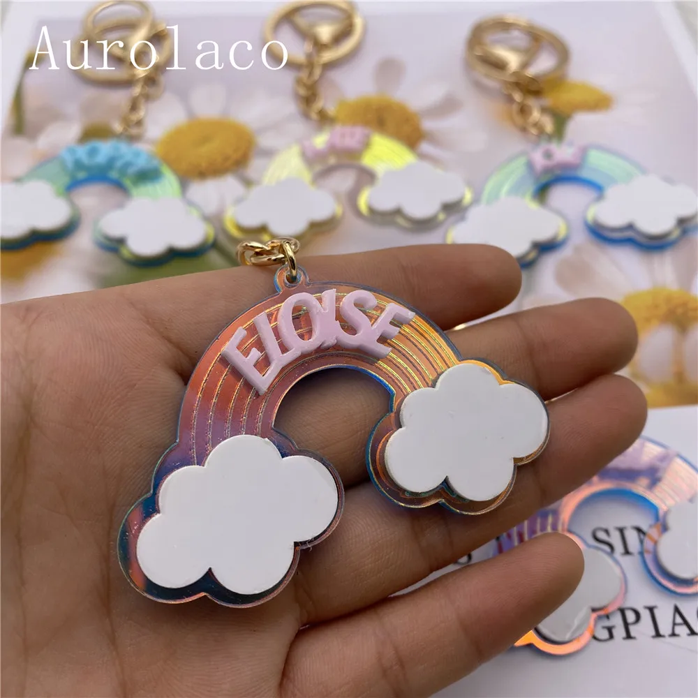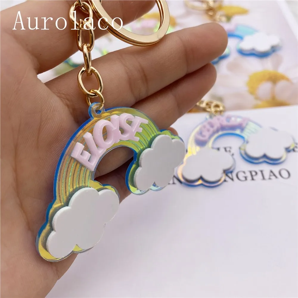 Брелок Aurolaco с именем на заказ, акриловый брелок, персонализированный акриловый Радужный брелок, подарок для женщин