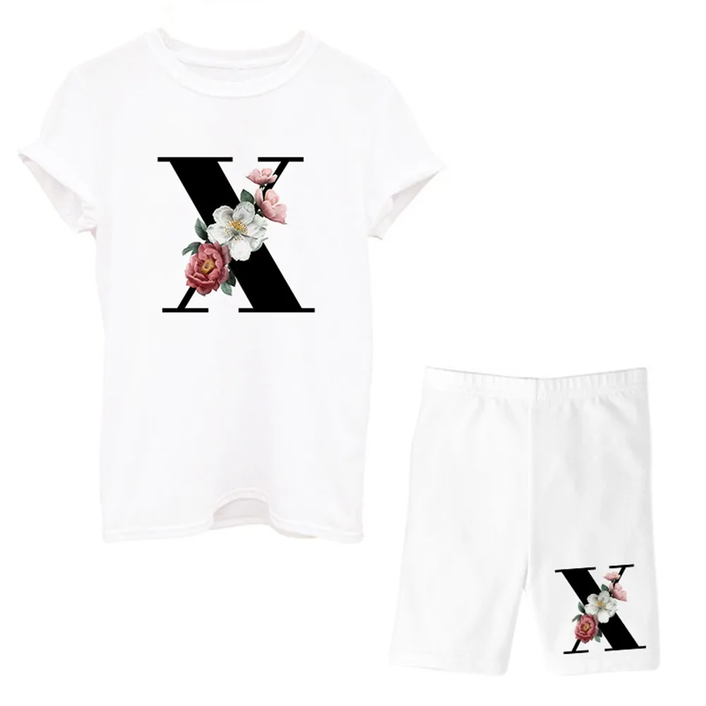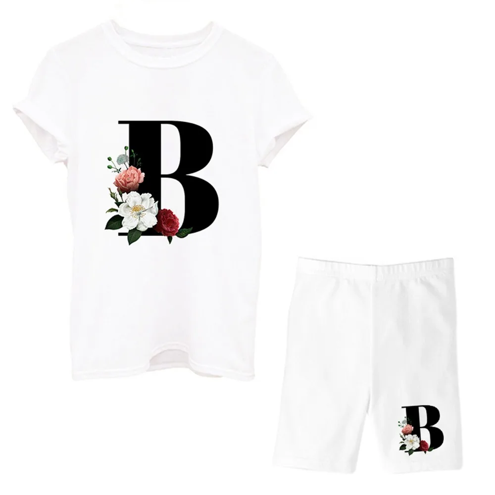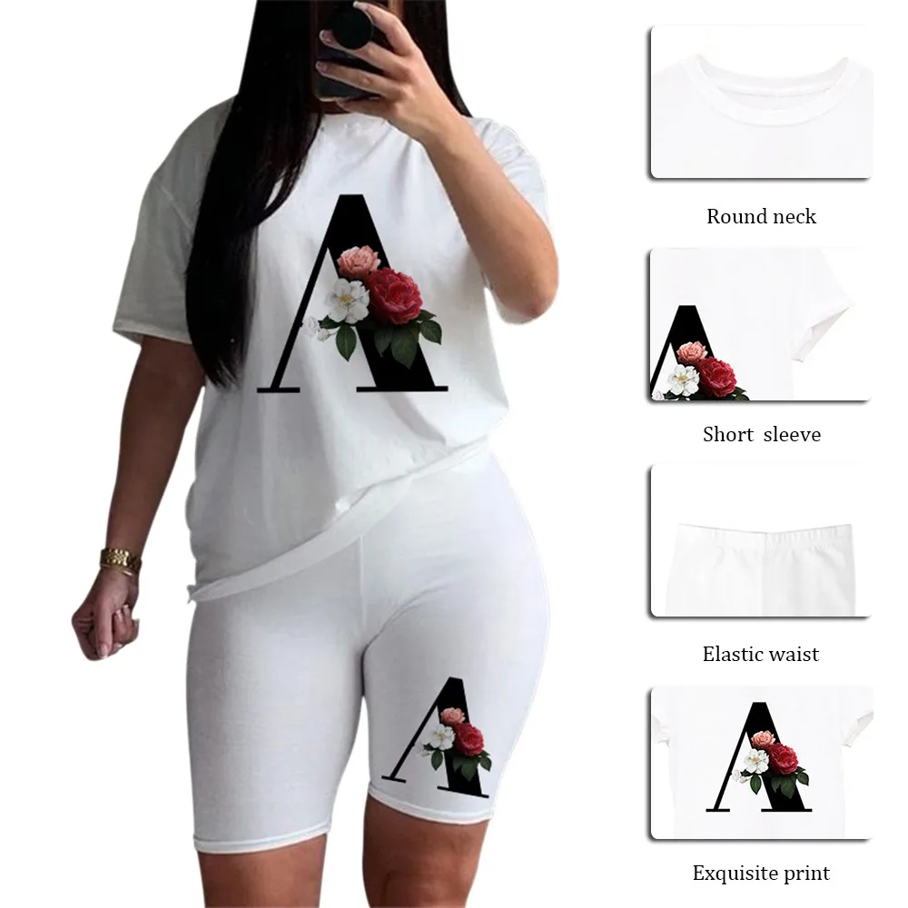 Комплект женский летний из футболки и шортов с надписью и круглым вырезом