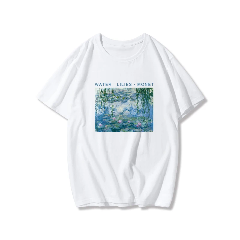 Рубашка женская с забавным принтом Кувшинок Моне, модная свободная футболка большого размера с мультяшным принтом маслом в стиле Харадзюку, с круглым вырезом, на лето
