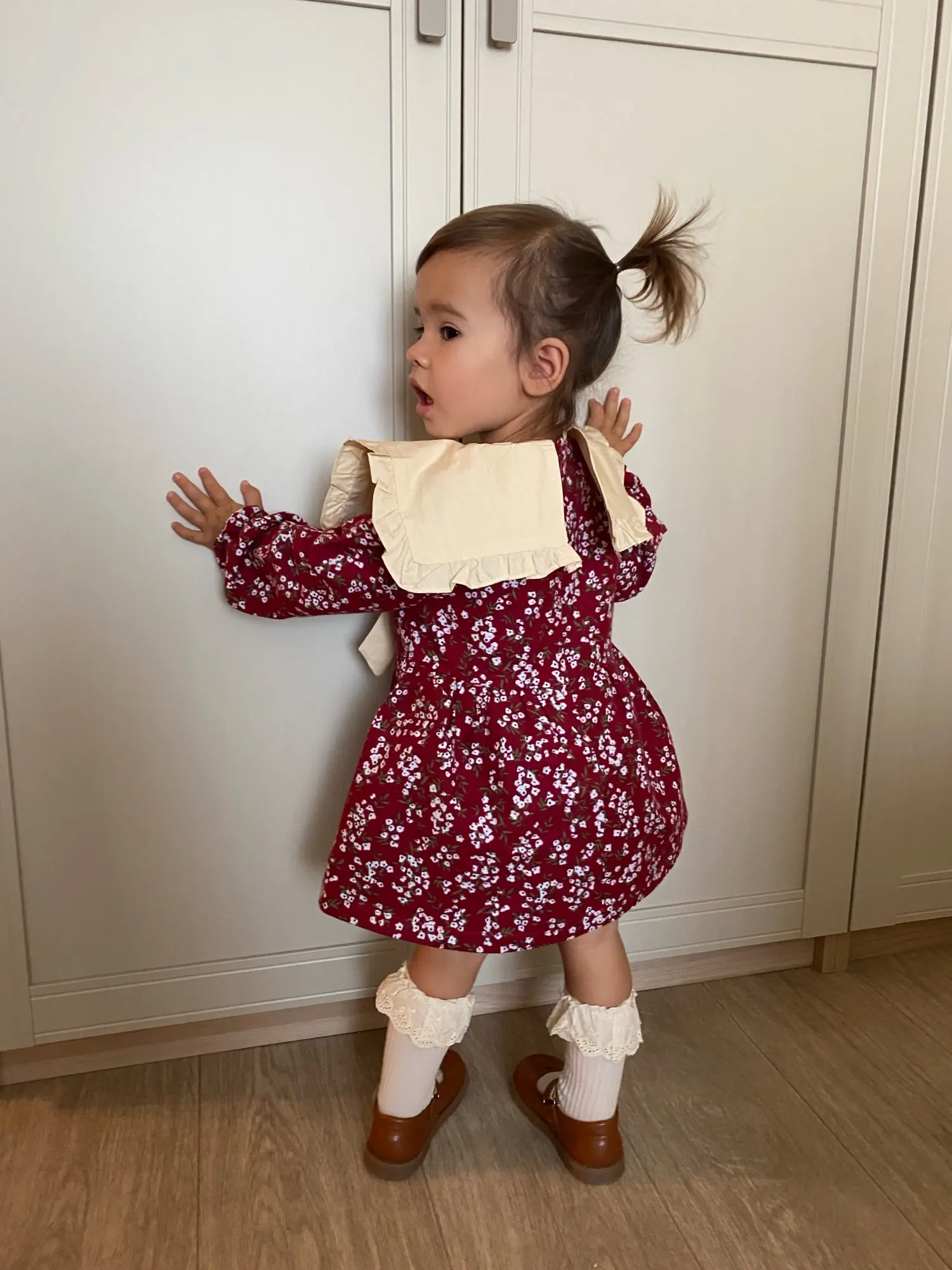 Платье для новорожденных девочек, весенняя одежда, платья с длинным рукавом и цветочным принтом на 1 год, одежда для маленьких девочек на день рождения, наряд, одежда, платье