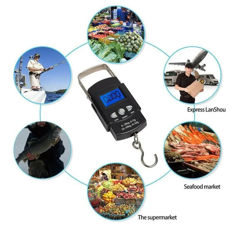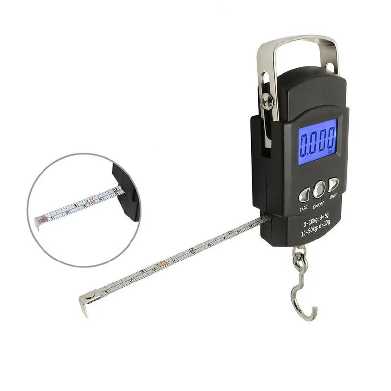 ЖК-дисплей с подсветкой, 110 фунтов50 кг, электронные весы, цифровая мерная лента для рыбалки, весы с крючком, остроумие для рыбалки R7P9