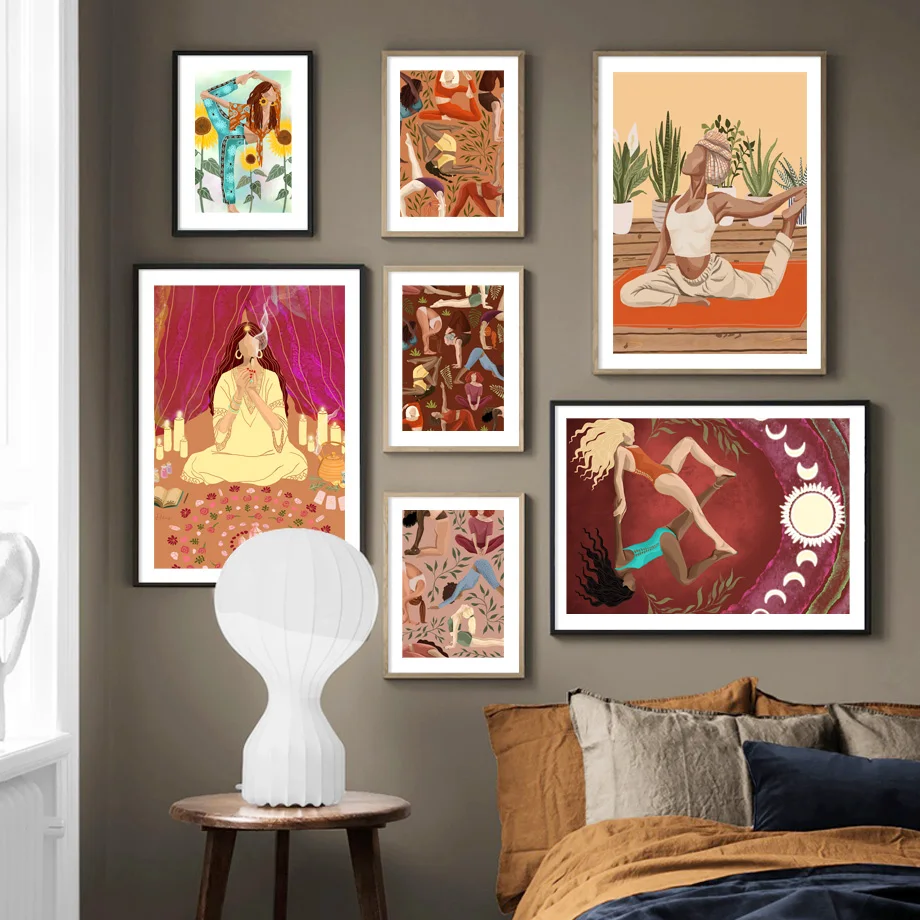 Абстрактная поза для йоги, модная девушка, цветок, настенная живопись на холсте, скандинавские постеры и принты, настенные картинки для декора гостиной