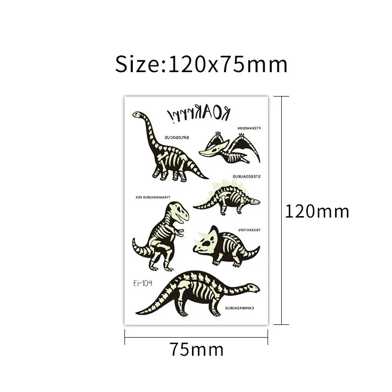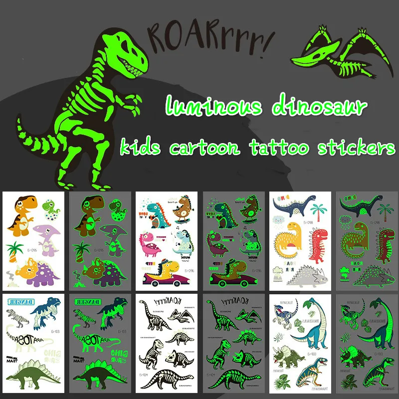 Новый стиль лета светящийся динозавр детские наклейки-татуировки Мультяшные забавные светящиеся наклейки временное детское потонепроницаемое украшение для тела