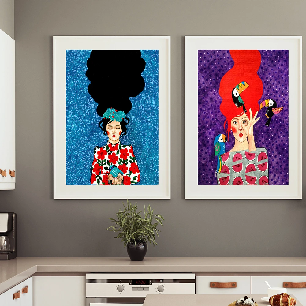 Женская Абстрактная Картина на холсте, модная девушка, иллюстрация,...