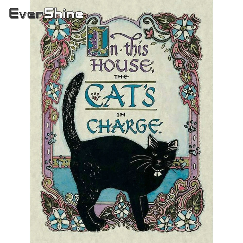 EverShine 5D алмазная картина животное DIY Алмазная вышивка кошка мозаика текст крестиком набор Стразы полностью квадратная настенная живопись