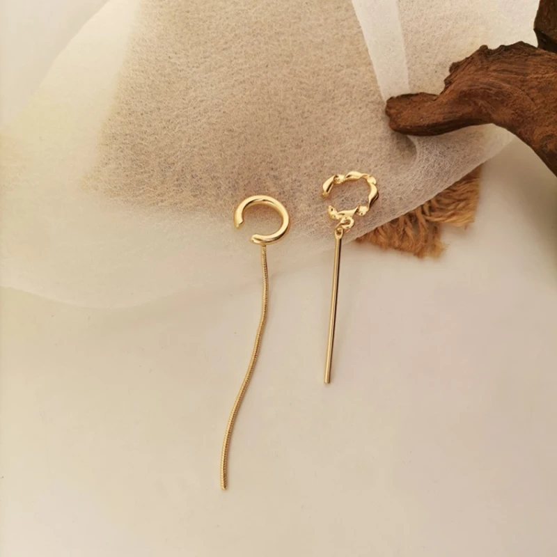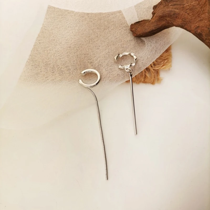 Клипсы женские, корейские, без прокола, с длинной цепочкой