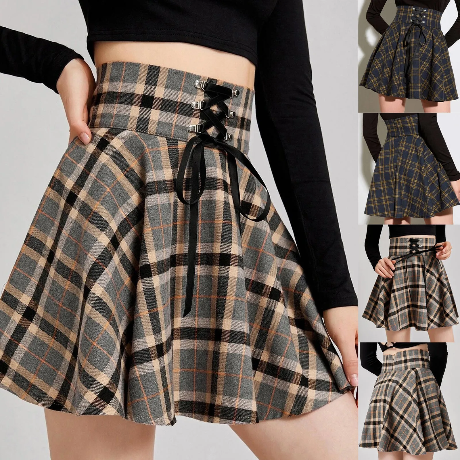 Клетчатая Летняя женская юбка с высокой талией, Прошитые студенческие плиссированные юбки, Женская Милая Мини-юбка на молнии в стиле ретро-панк для танцев и девушек