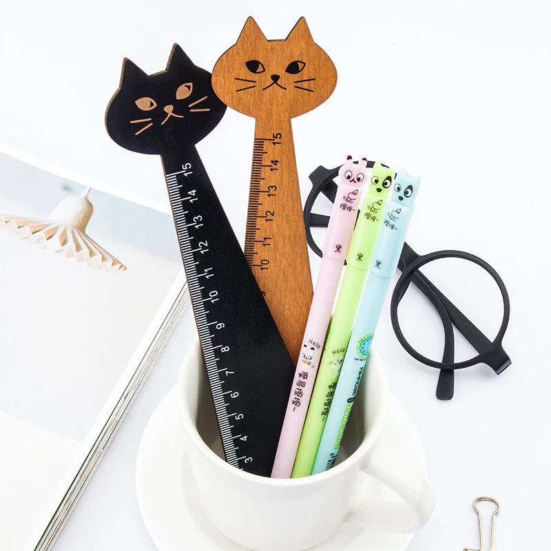 Деревянные линейки с мультяшным котом, 2 шт., 15 см, измерительная снасть, инструмент для рисования, милые канцелярские товары, студенческие подарки, школьные и офисные принадлежности