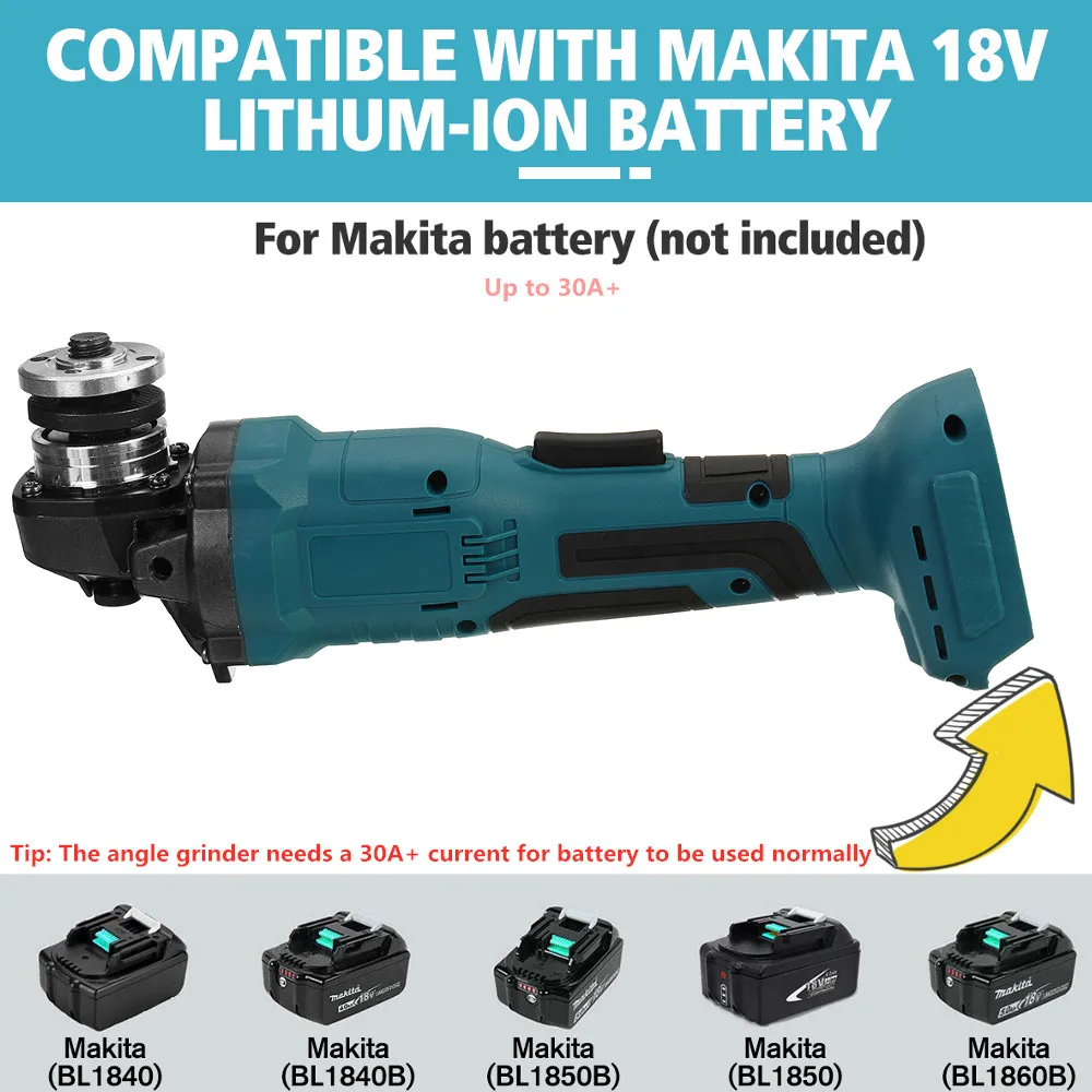 Совет: угловая шлифовальная машина требует тока 30A + для нормального использования батареи