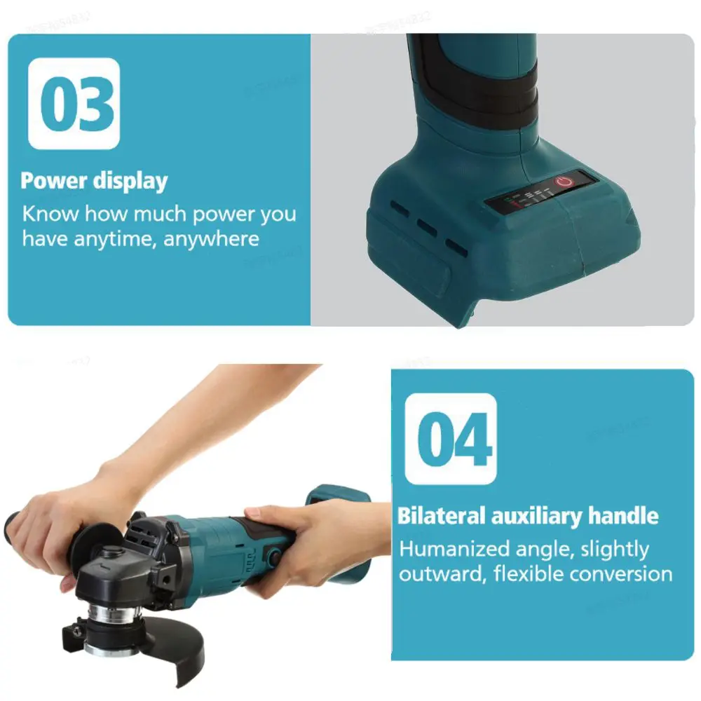 Шлифовальная машина, бесщеточный угловой точильный станок для Makita, 800 обмин, 11000 мм, литиевая батарея 18 в, 125 Вт