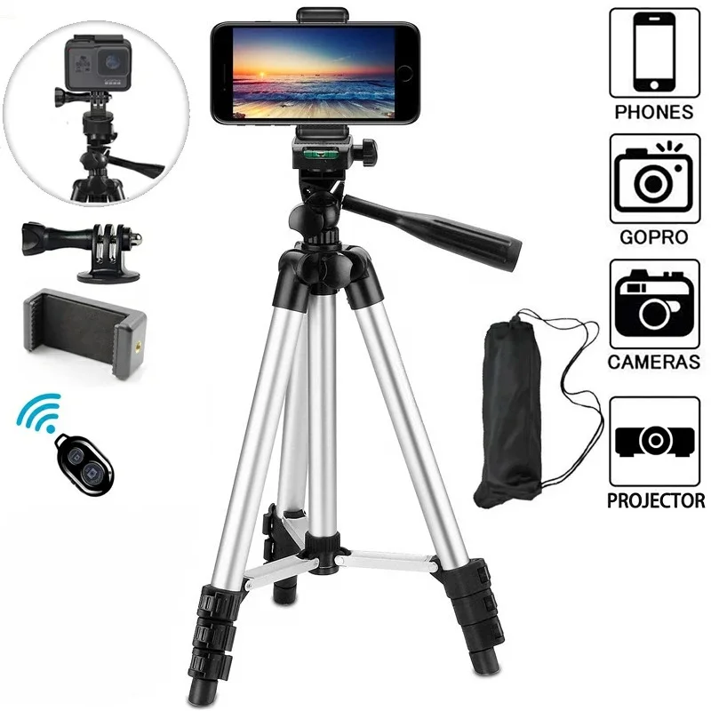 1. Быстрая настройка, простота в эксплуатации2. Подставка держатель зажим для Live Youtobe3. Дистанционная ручка для селфи4. Для iPhone IOS Android5. Легкие ПутешествияОсобенности:1. Портативный и гибкий, идеально подходит для наружных, дорожных и таймеров2. Встроенный пузырьковый уровень, что делает ваш штатив идеально выровненным3. Совместимость со всеми видами цифровых камер, видеокамеры или смарт-фона4,360 ° по горизонтали и 90 ° по вертикали для удовлетворения различных потребностей5. С рукояткой для регулировки положения головки6. Алюминиевые ножки с нескользящей резиновой подошвой, больше безопасности