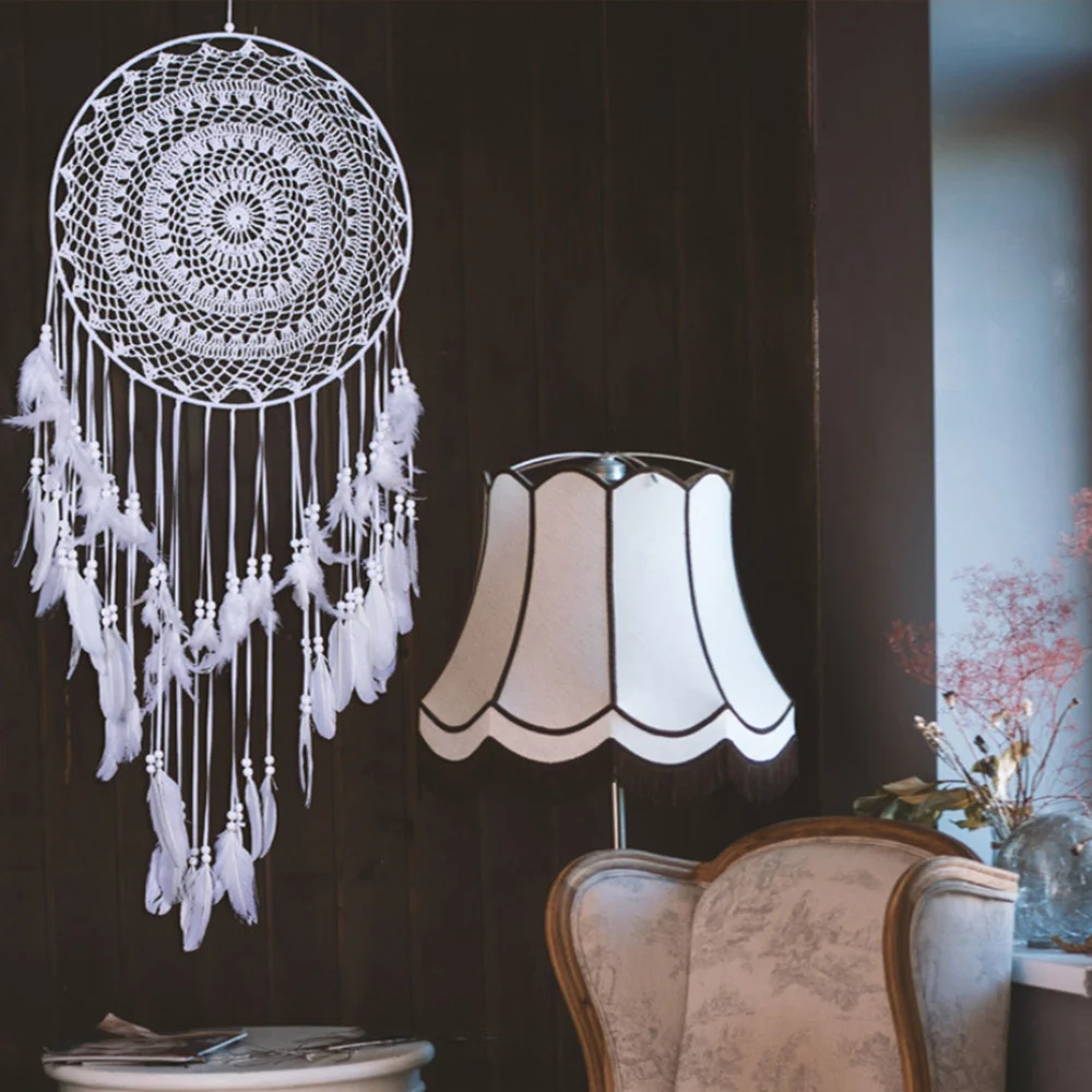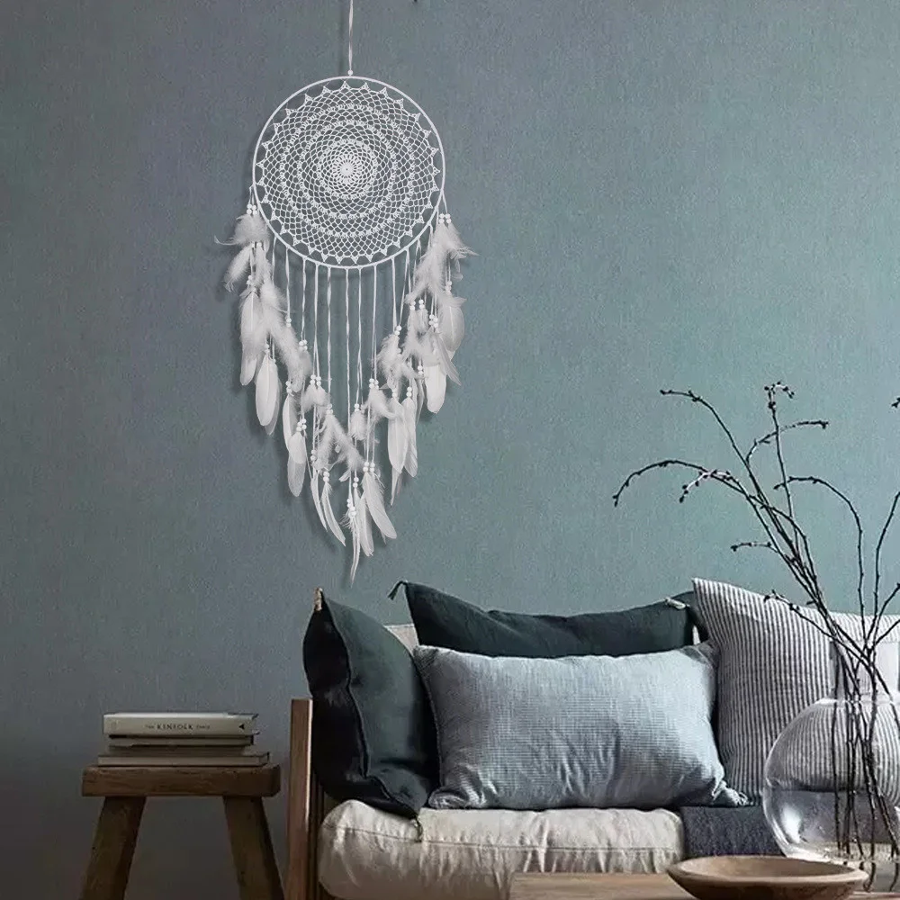 Большой Ловец снов в скандинавском стиле, 1 шт., ветряные колокольчики с белыми перьями для детской комнаты, домашнее подвесное украшение, товары для свадебной вечеринки 110-120 см