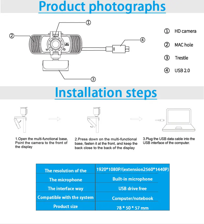 2K HD Компьютерная камера, веб-чат в прямом эфире, Бесплатный диск,...