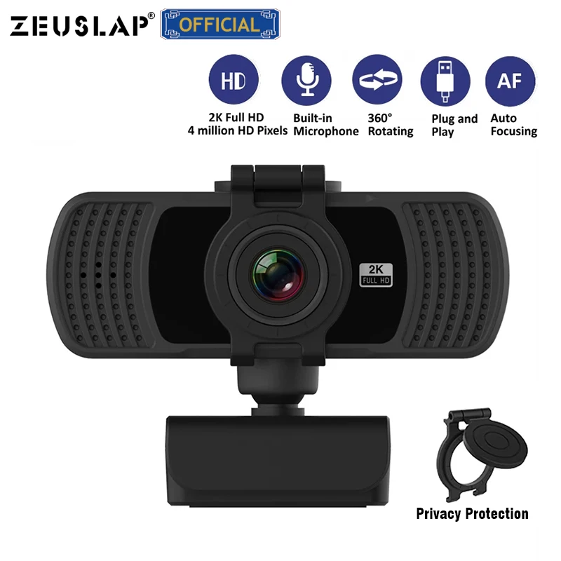 ZEUSLAP веб-камера 2K компьютер ПК веб-камера с микрофоном для прямой трансляции видео вызова Конференции работы Camaras веб-ПК