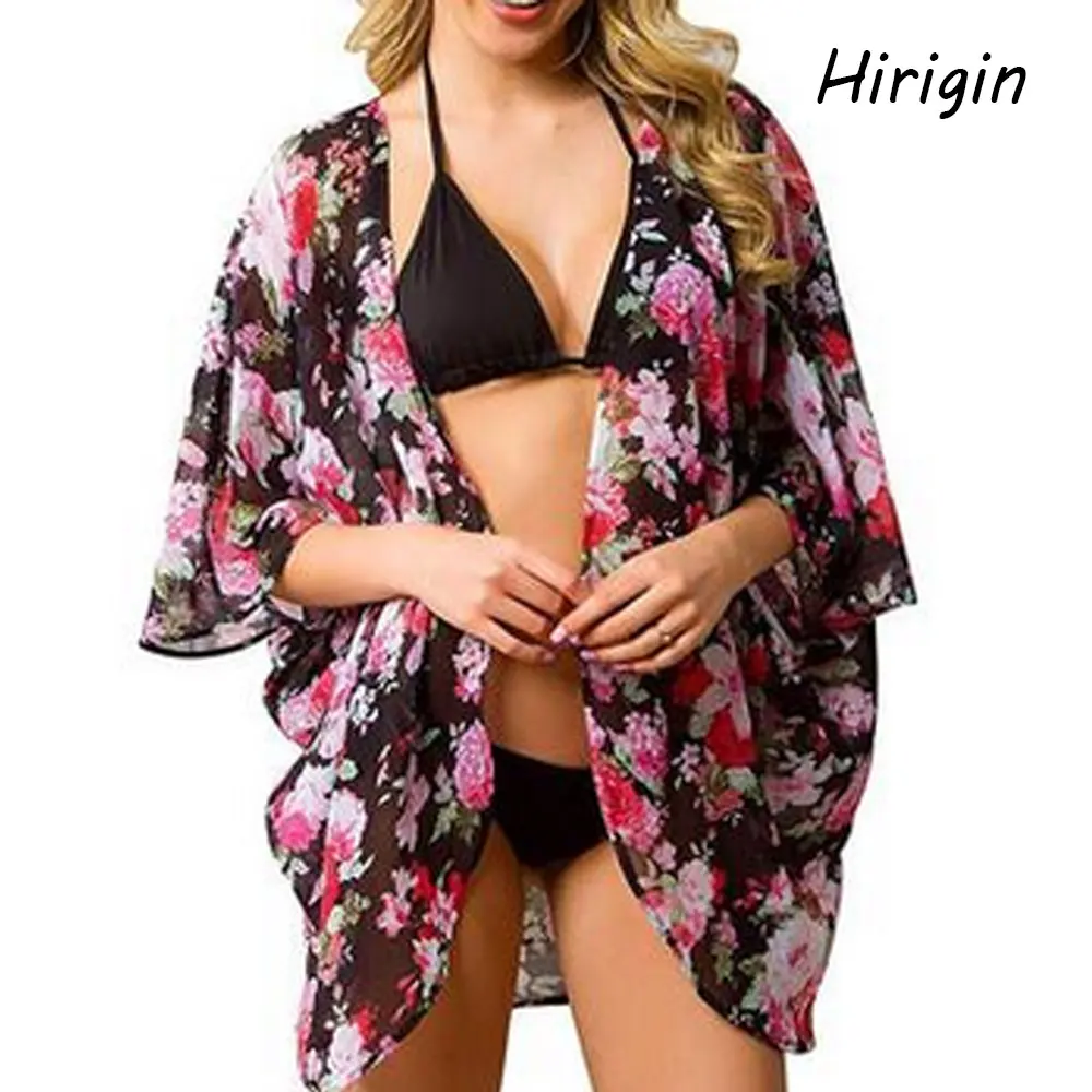 Кимоно женское винтажное, пикантный Кардиган с длинным рукавом, шифоновая свободная накидка с цветочным принтом, накидка, блузка, на лето