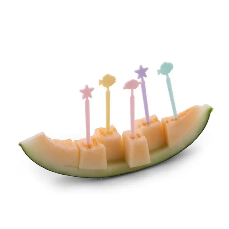 20 шт.компл. японский Стиль сладкий Карамельный цвет мини фрукты выбирает детская стильная футболка с изображением персонажей видеоигр океан ручка в форме рыбы снэк-десертных вилок Bento