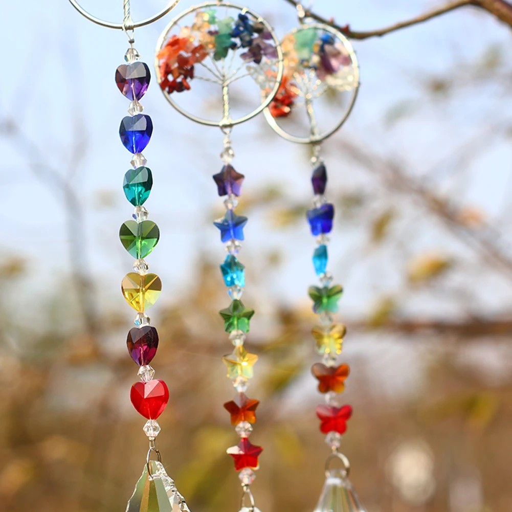 Хрустальный перезвон ветра кулон красочные жизни дерево бусины Вися...