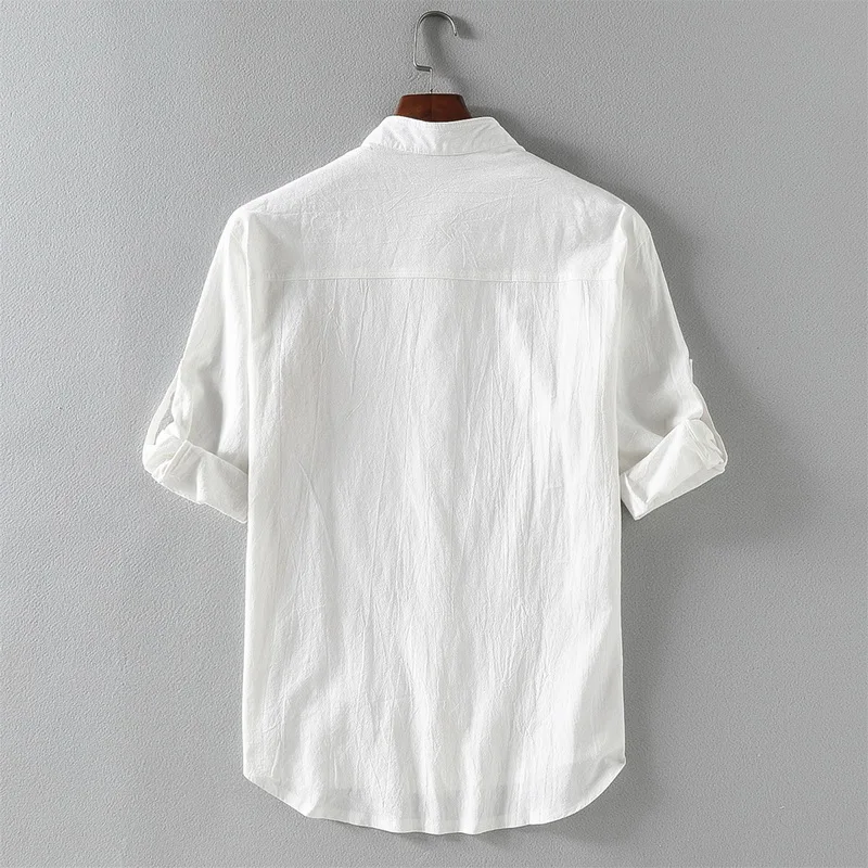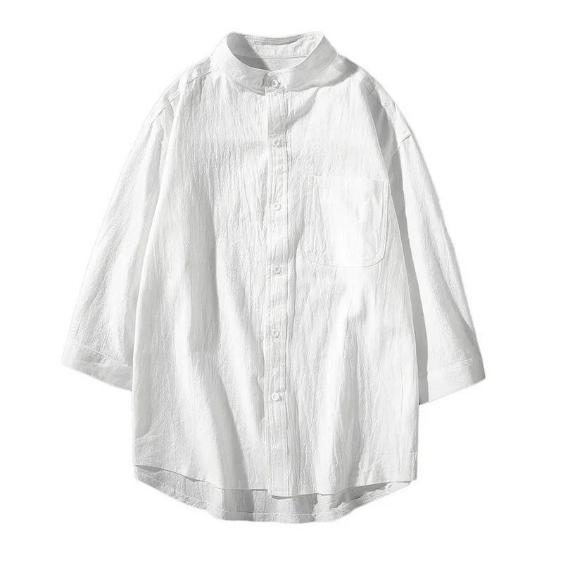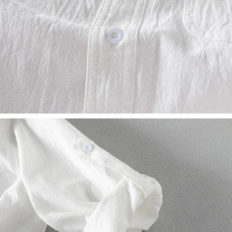 Рубашка мужская с короткими рукавами, дышащая льняная Хлопковая сорочка, однотонная белая, 2021, лето 566