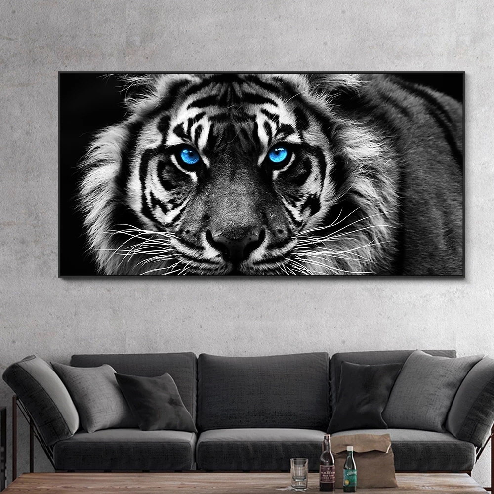 Черно-белая голова тигра, картины на холсте, современные постеры с ...