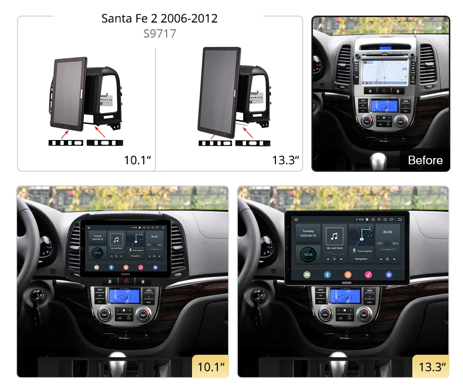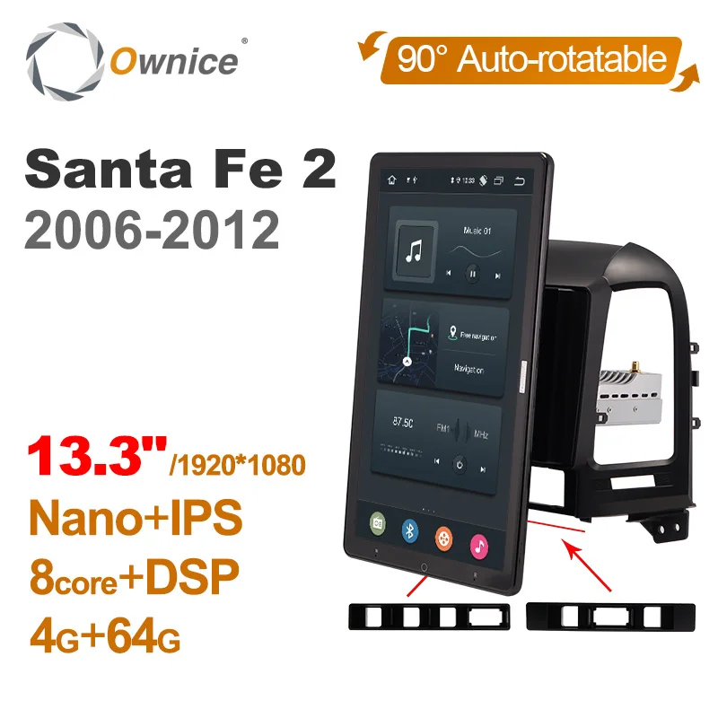 13,3 дюймов 1920*1080 Ownice Android 10,0 автомобиль радио для Hyundai Santa Fe 2 2006-2012 GPS Авто аудио стерео проигрыватель авто поворотный