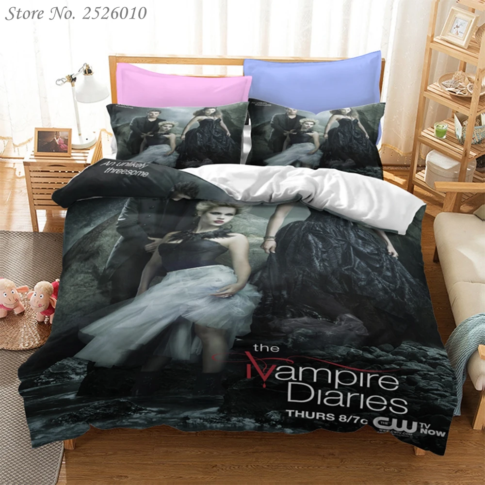 Комплект постельного белья Дневники вампира, с 3D рисунком, с пододеяльником и наволочкой, двуспальный, Королевский Комплект постельного белья, 01