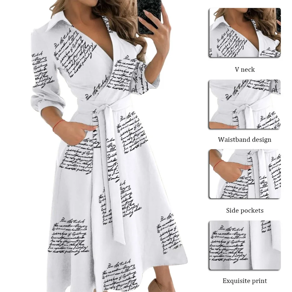 Платье-рубашка женское в горошекс цветочным принтом, однобортное Праздничное Платье макси с длинным рукавом и поясом, одежда для весны и осени