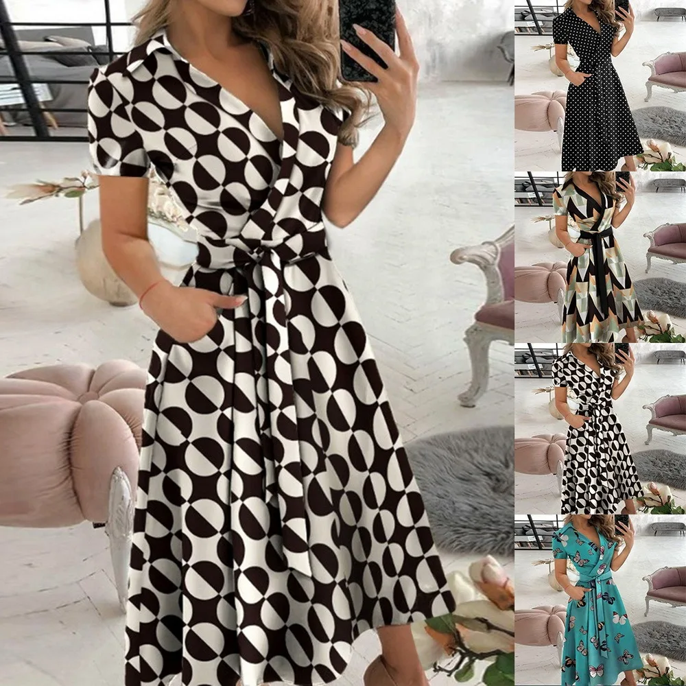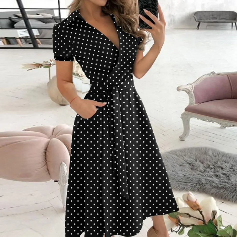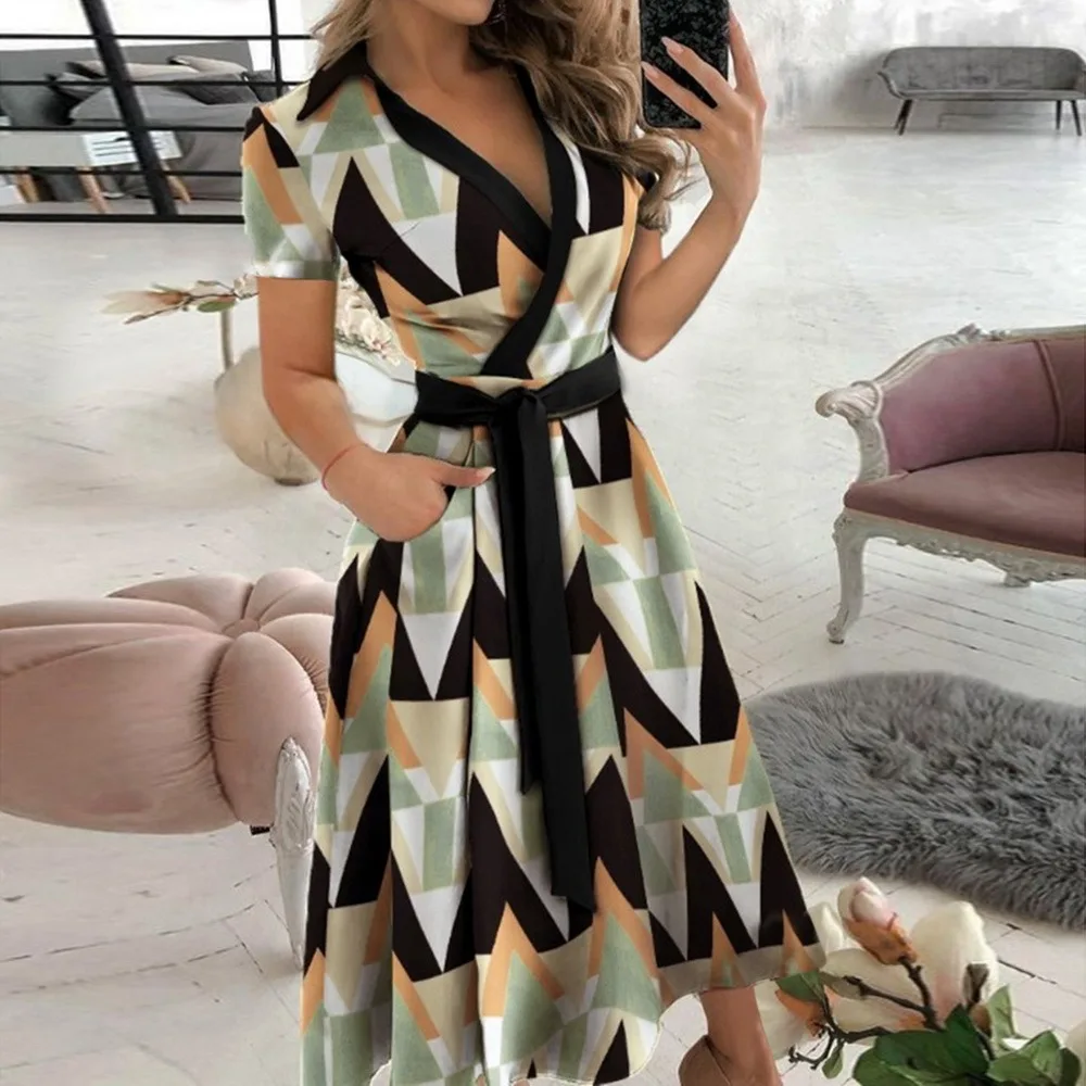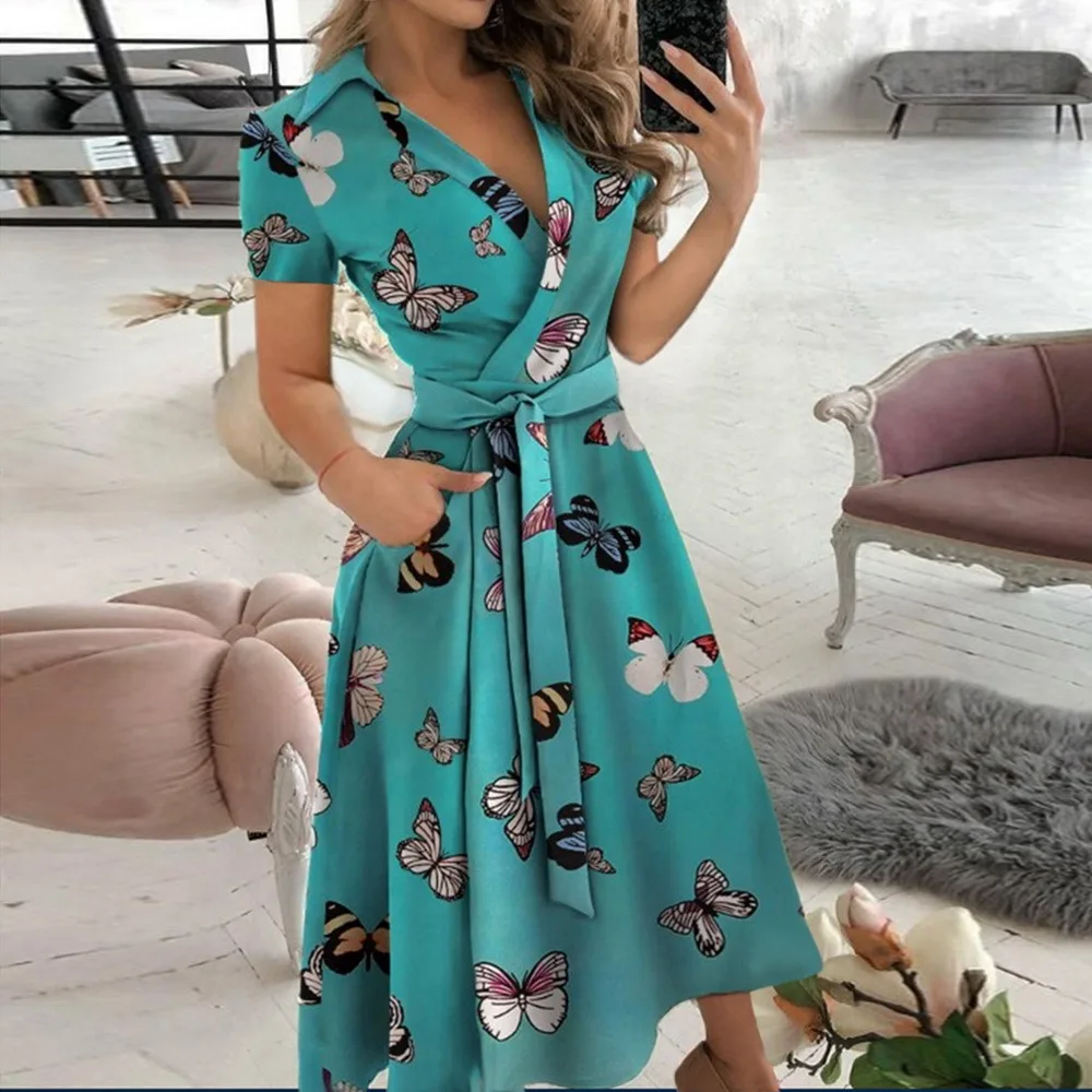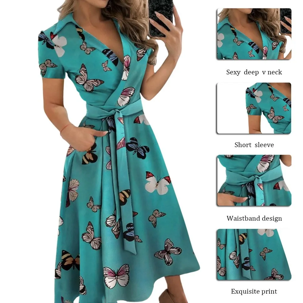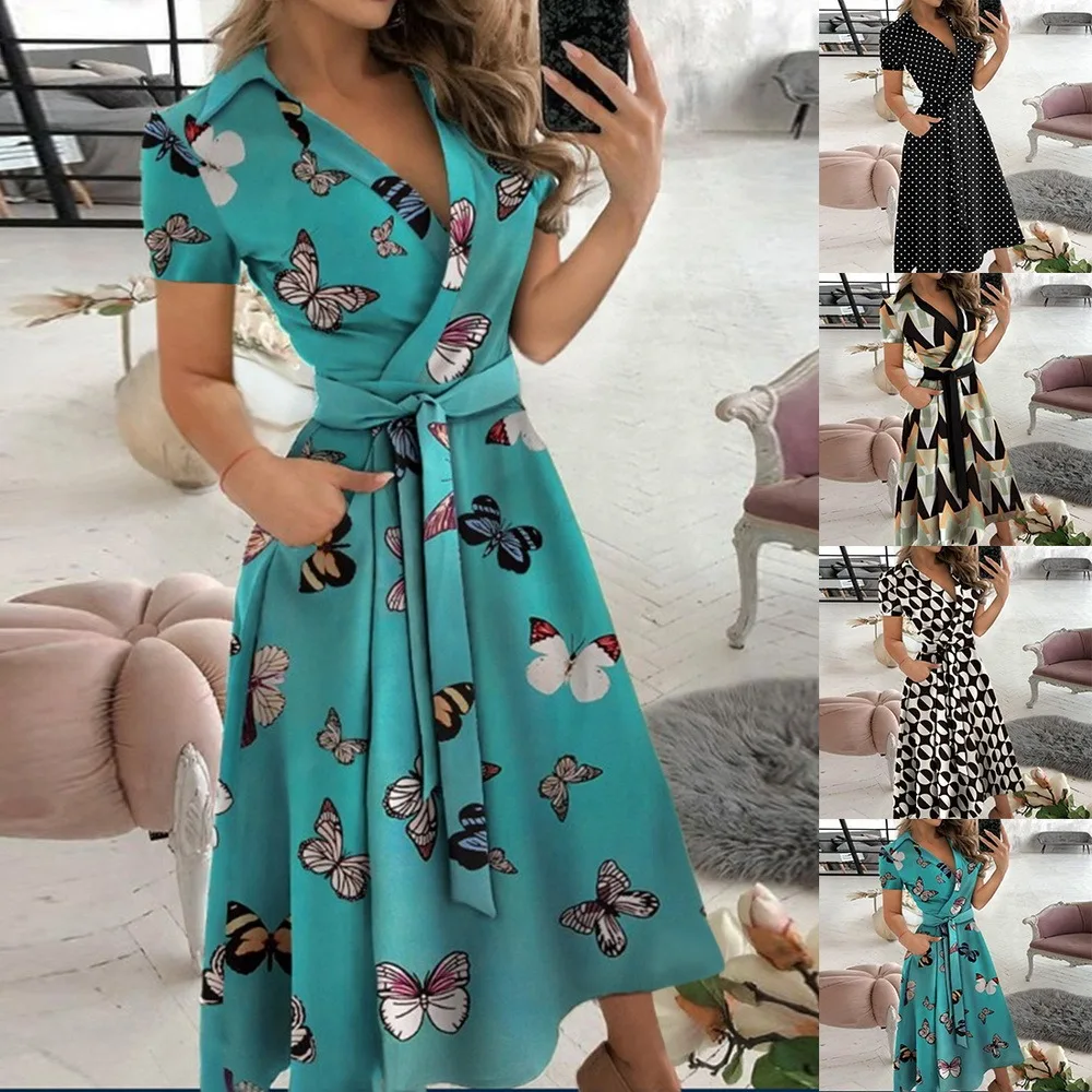 Платье женское летнее с V-образным вырезом, пикантное офисное повсе...