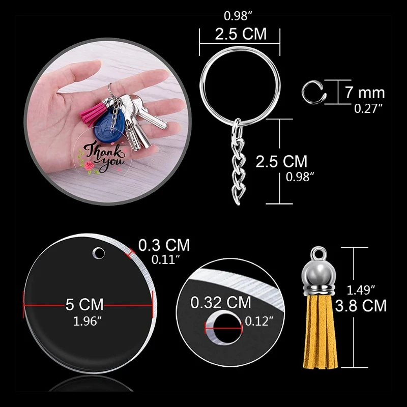 90120 шт. акриловые заготовки для брелоков с кольцами для ключей, Колечки для ключей, круглые прозрачные диски, круглые Разноцветные Подвески с кисточками для проектов сделай сам