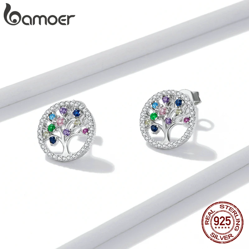 Bamoer Аутентичные Красочные Древо жизни 925 пробы серебряные серьги-шпильки эффектные ювелирные изделия Bijoux BSE497