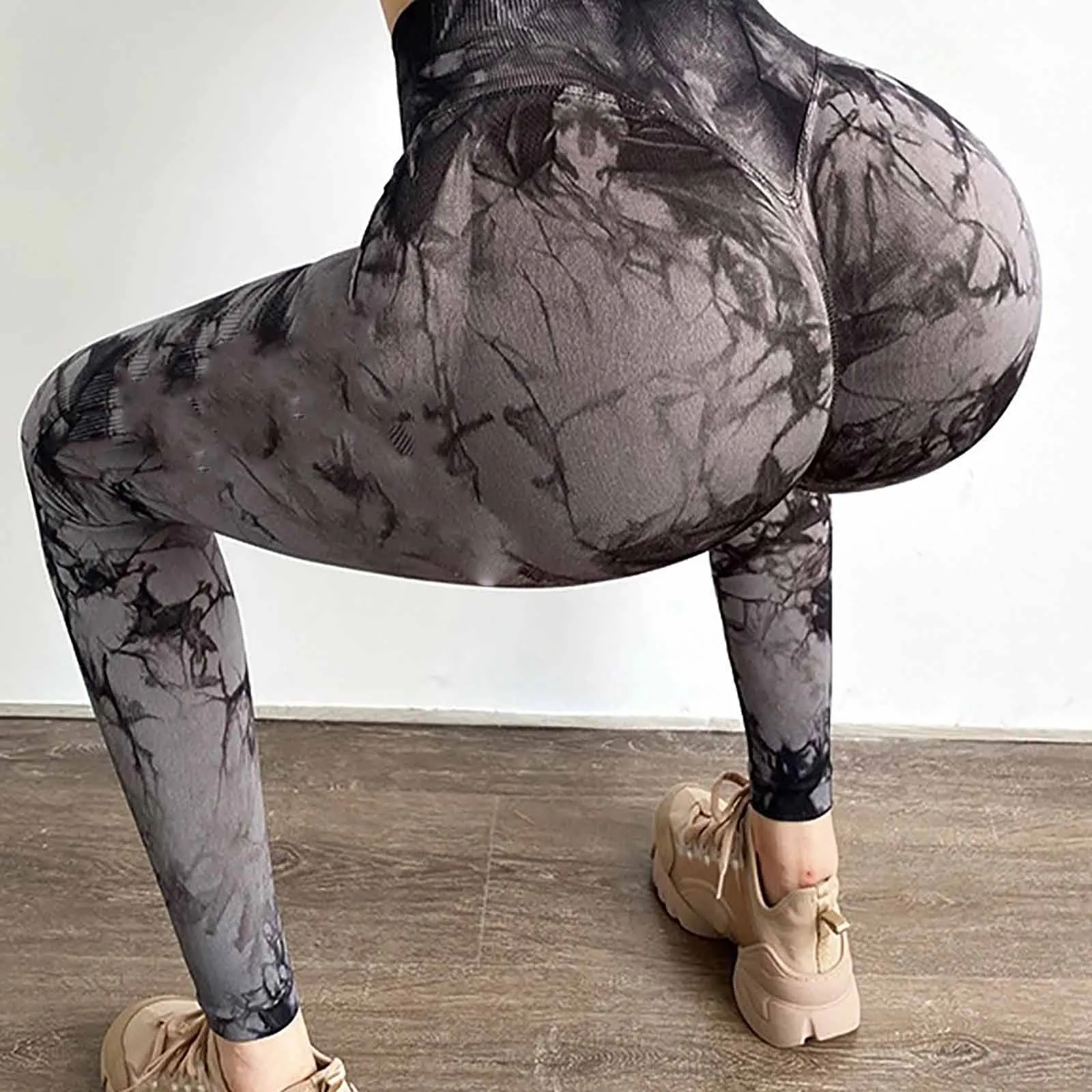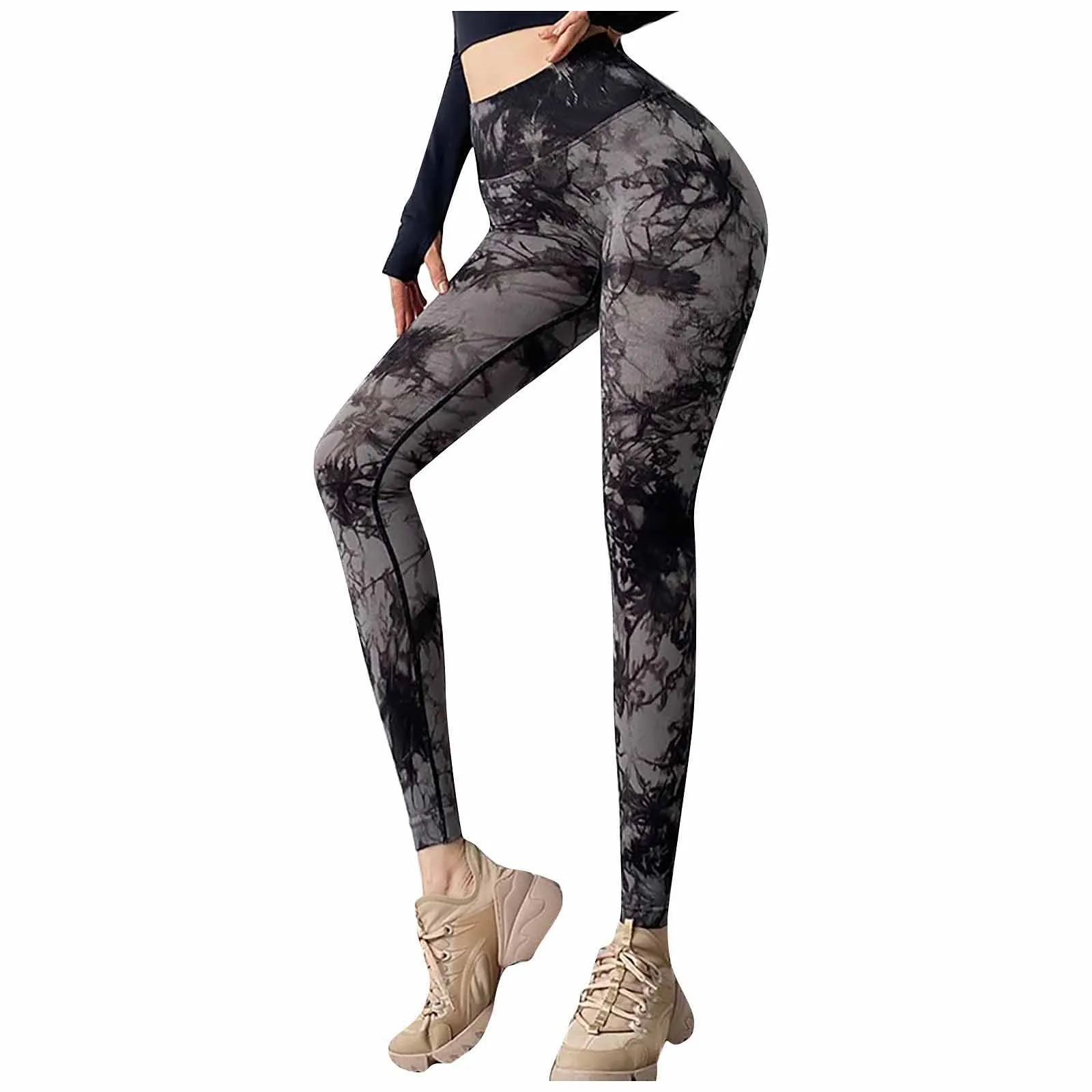 Для женщин тай-дай Спортивные штаны Slim хип подъемные упражнения низ эластичные бесшовные брюки для бега для Для женщин Высокая талия спортивная одежда