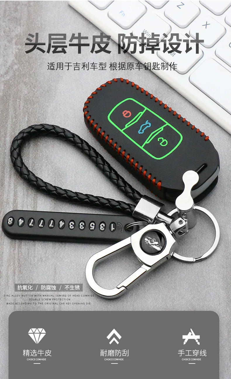Светящийся кожаный чехол для ключей автомобиля для Geely Atlas SUV ...