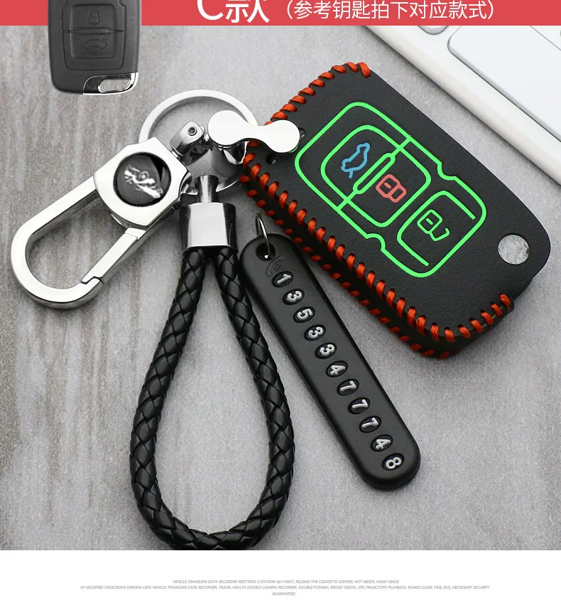 Светящийся кожаный автомобильный чехол для ключа дистанционного упр...