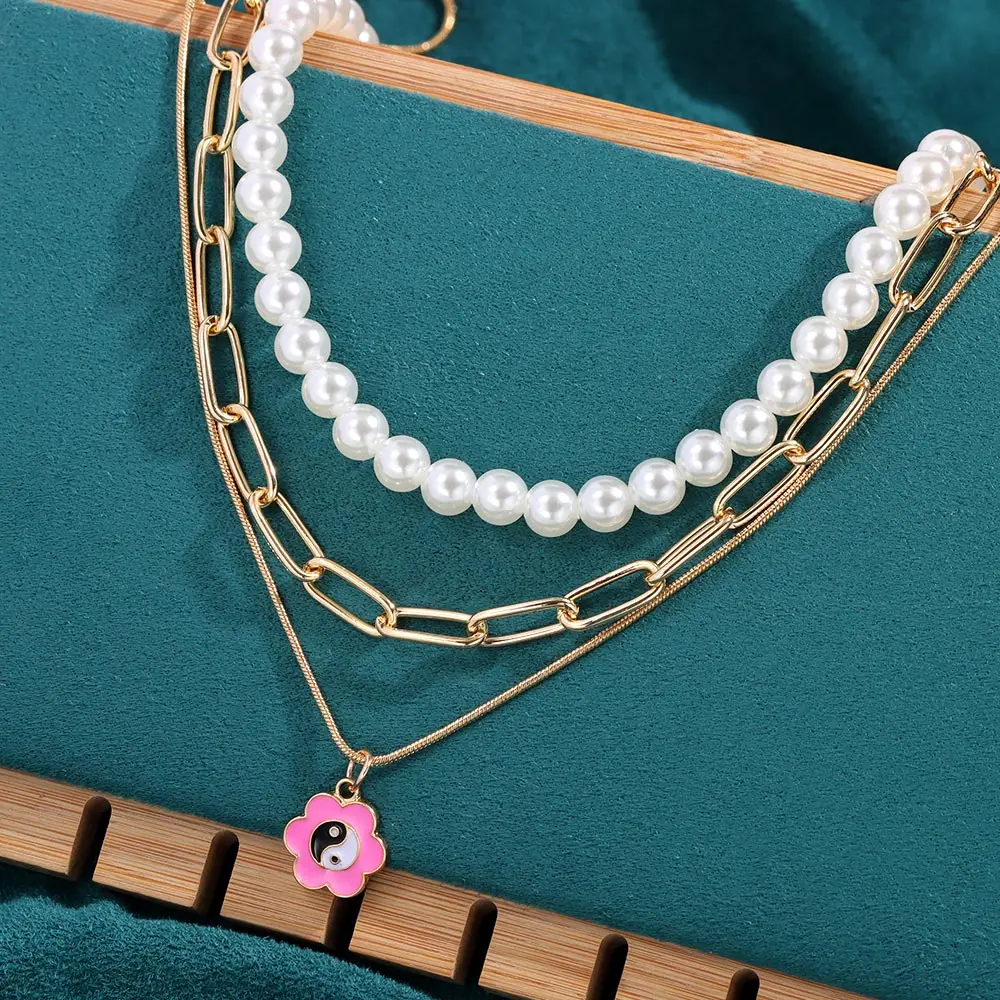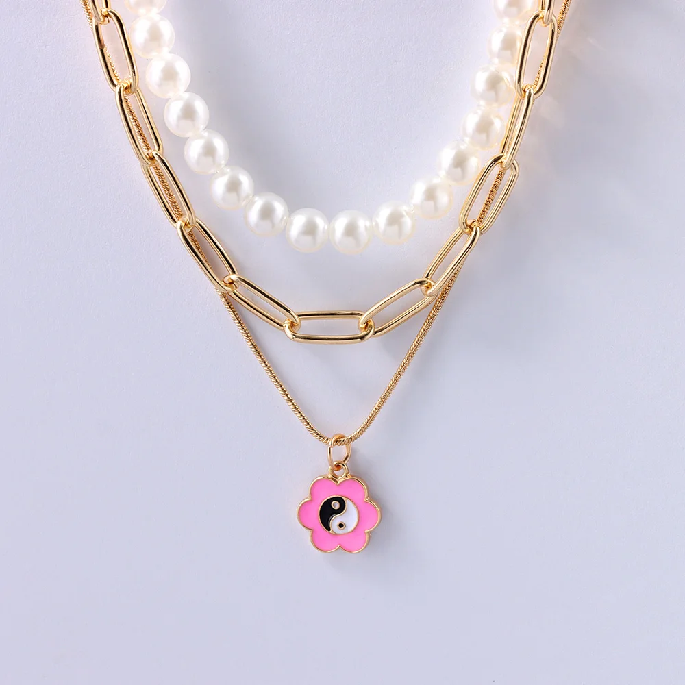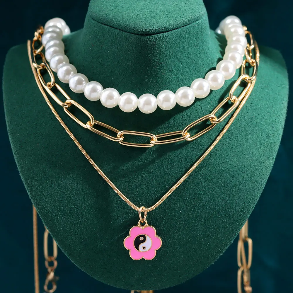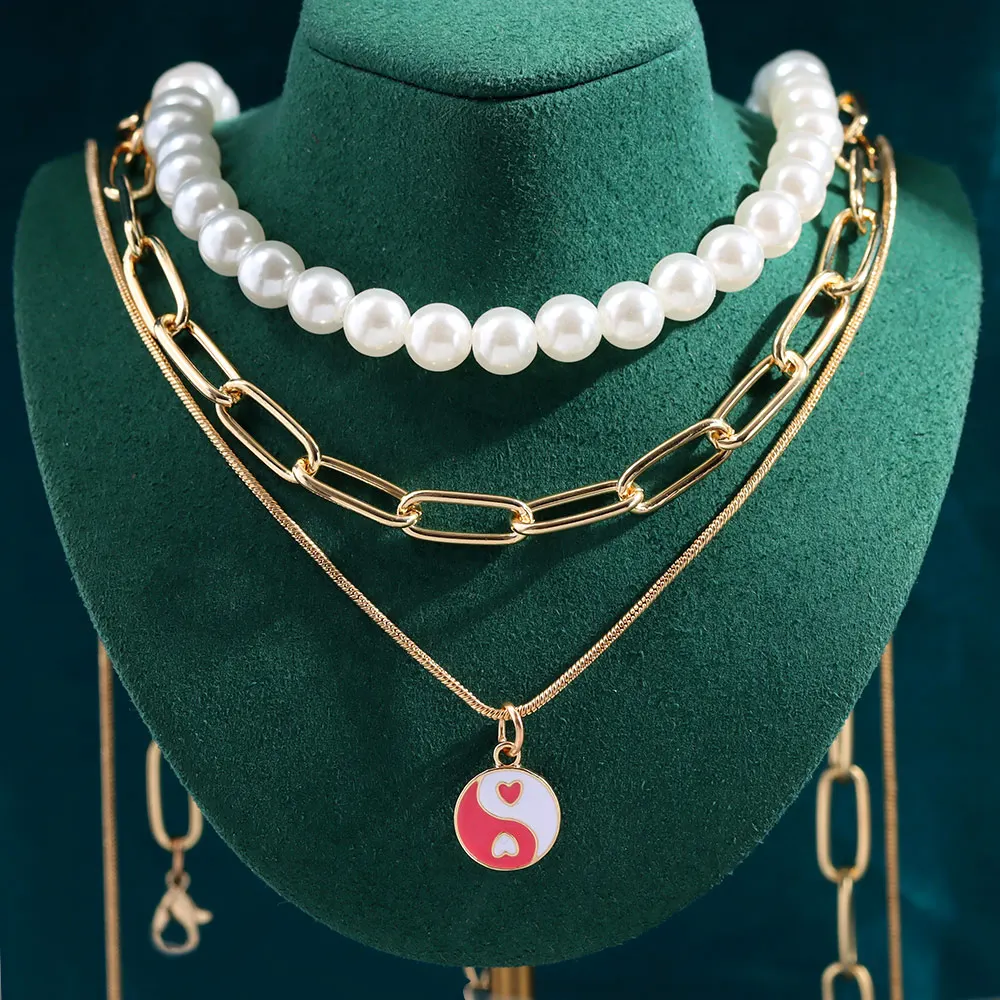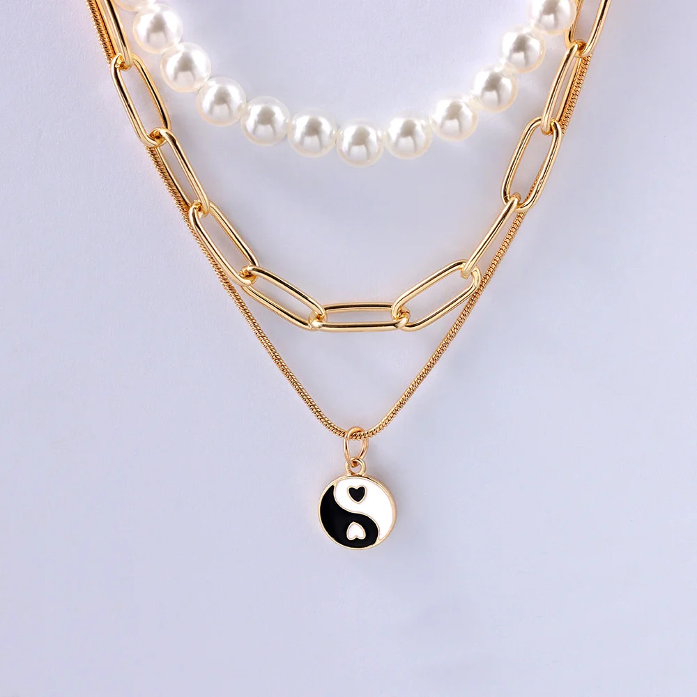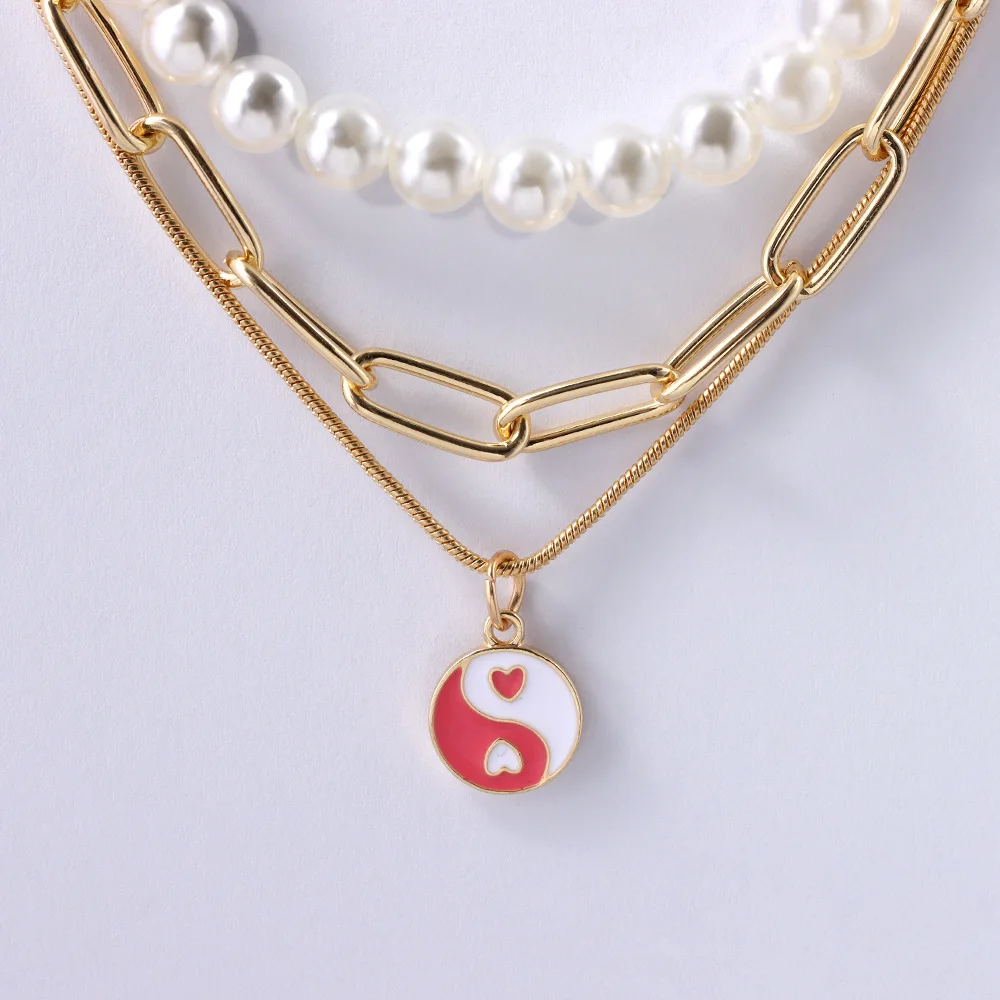 Просто чувствовать себя новые геометрические милые пуловеры с круглым Yin Yang кулон ожерелье для женщин модные элегантные многослойное жемчужное колье ожерелье ювелирные изделия