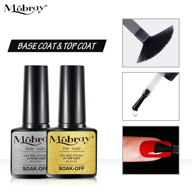 Базовое и верхнее покрытие Mobray, Гель-лак для УФ-лампы, отмачиваемый, укрепляющий, 8 мл, Полупостоянный лак для ногтевого дизайна, маникюрный Гель-лак, Праймер, Базовое покрытие
