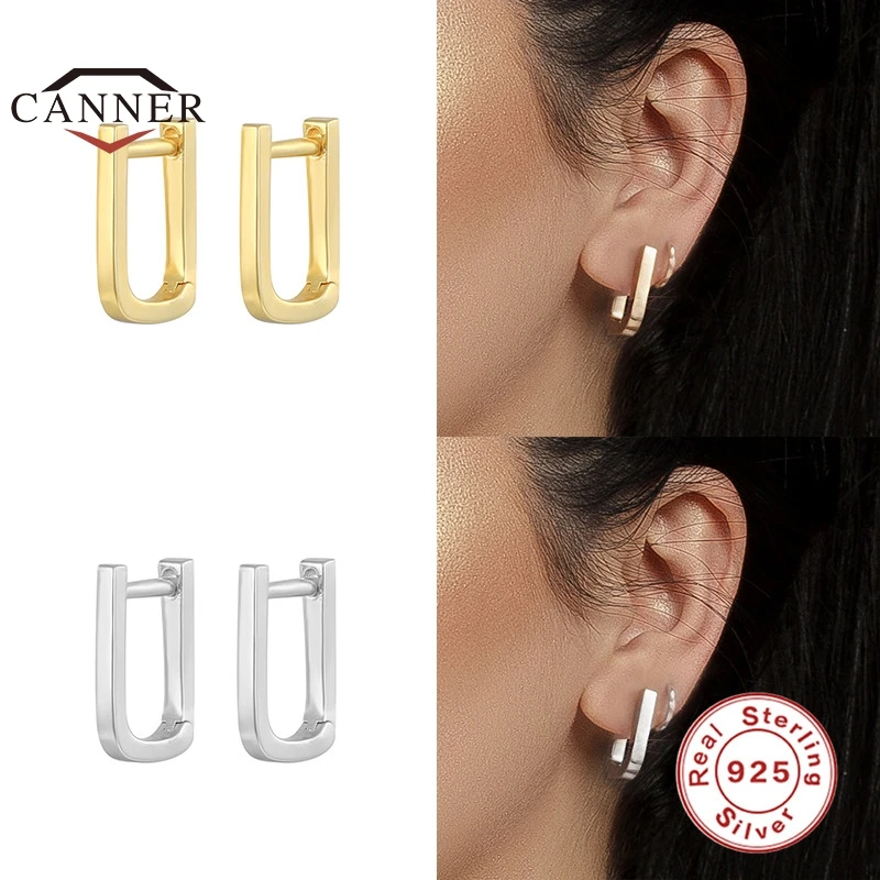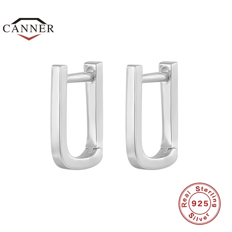 Женские глянцевые квадратные серьги-кольца CANNER из настоящего серебра 925 пробы, минималистичные серьги-кольца для пирсинга Huggie, ювелирные изделия 925