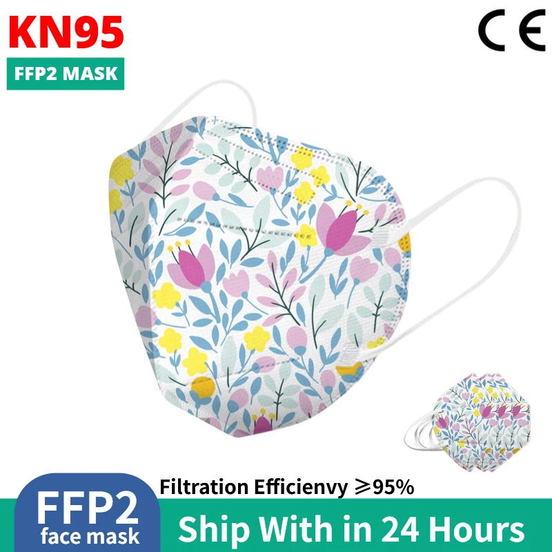 10204050 шт. взрослых KN95 маска цветочный принт FFP2 маска CE Сертификация Безопасность 5-Слои фильтр Цветочная маска защитный FFP2 маска