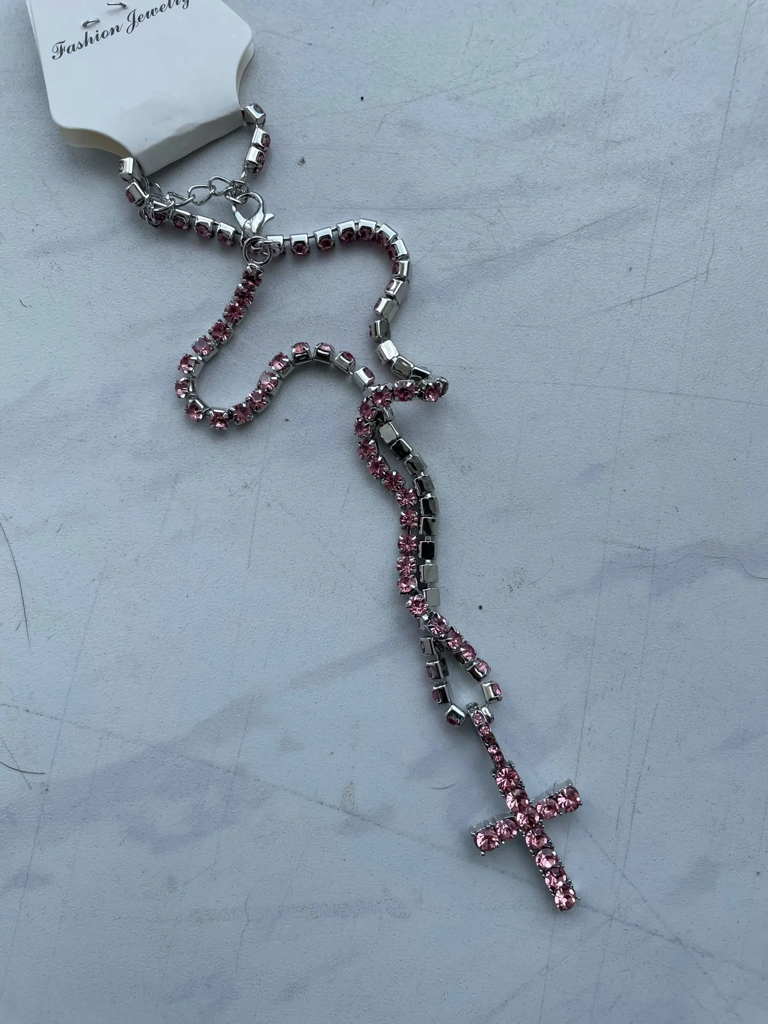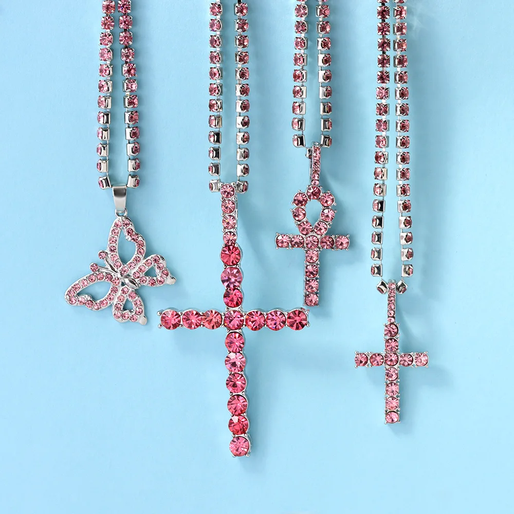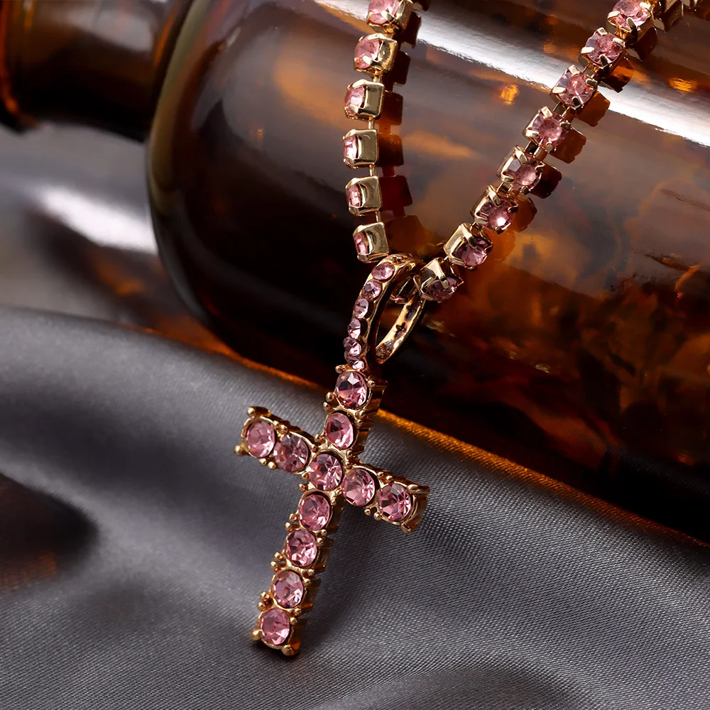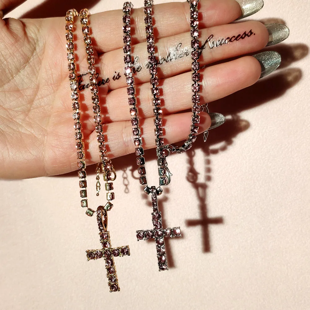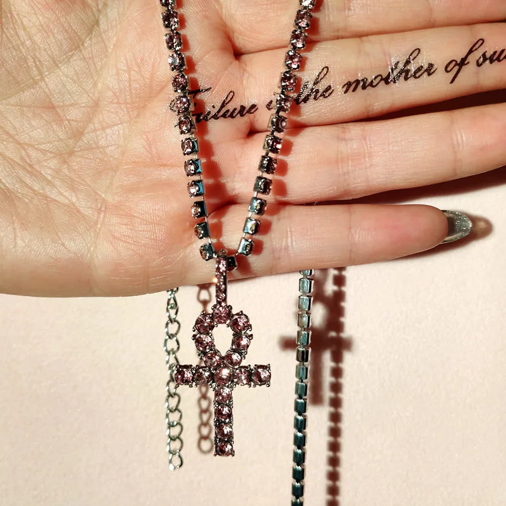 Чокер INS многослойный Женский, теннисная цепь в стиле хип-хоп с подвеской крест-Анкх, теннисная цепь с кристаллами розовой стразы, вечерняя бижувечерние я