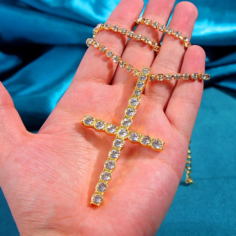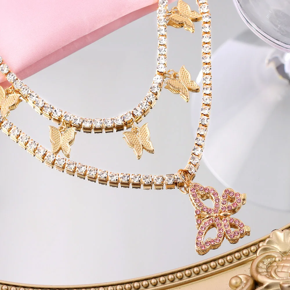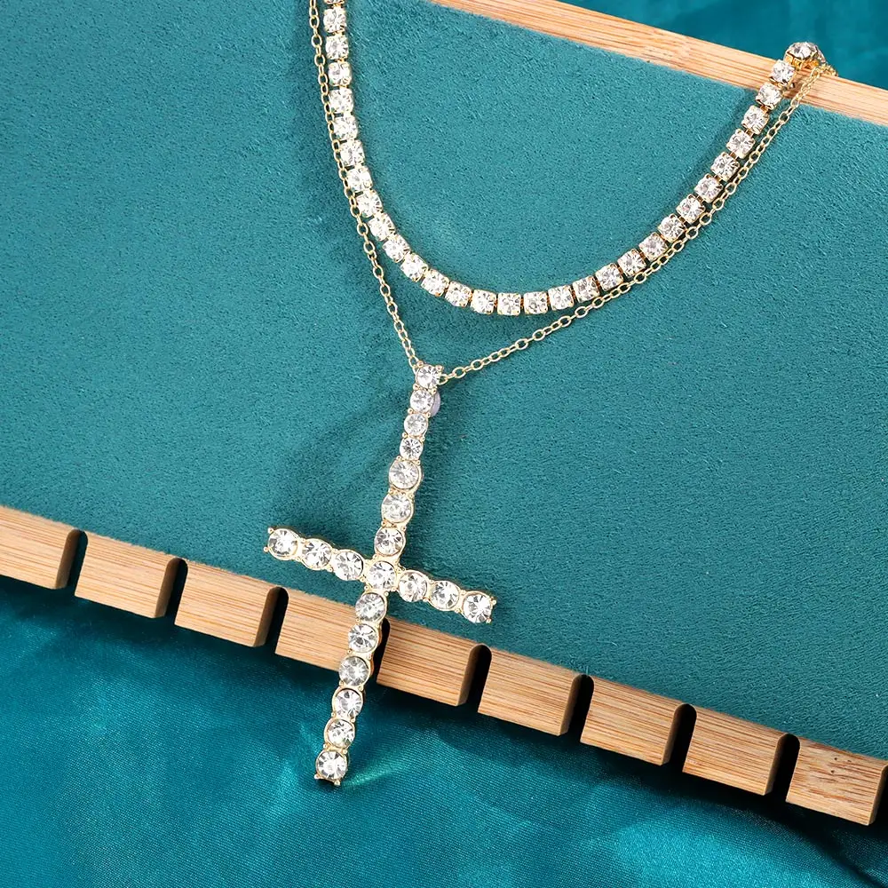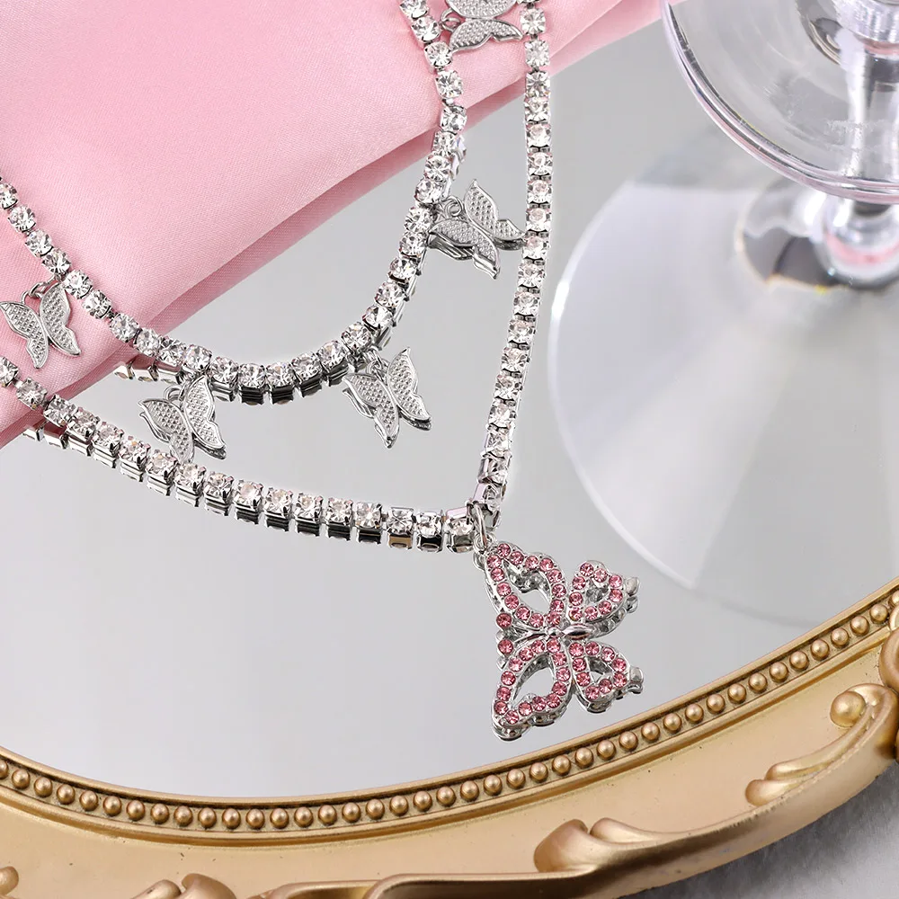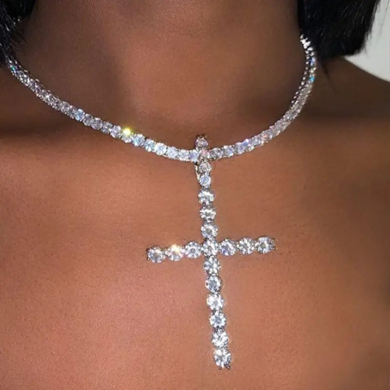 Чокер INS многослойный Женский, теннисная цепь в стиле хип-хоп с подвеской крест-Анкх, теннисная цепь с кристаллами розовой стразы, вечерняя бижувечерние я