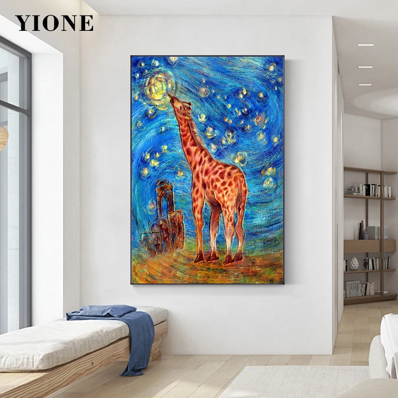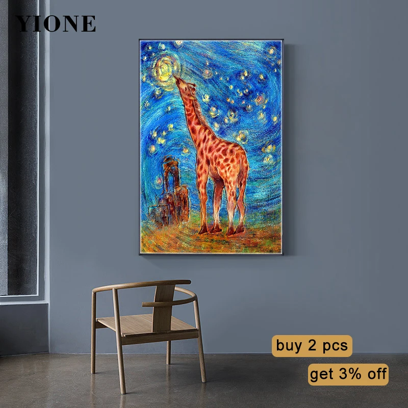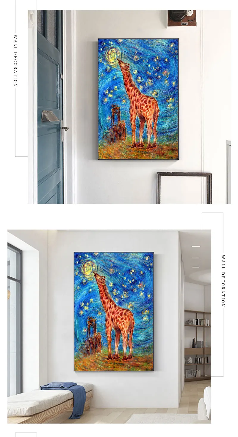 Абстрактная живопись синее звездное небо "Жираф" Холст Картина маслом изготовленный на заказ искусство изображение животного на стене печать плакатов для Гостиная Украшения в спальню