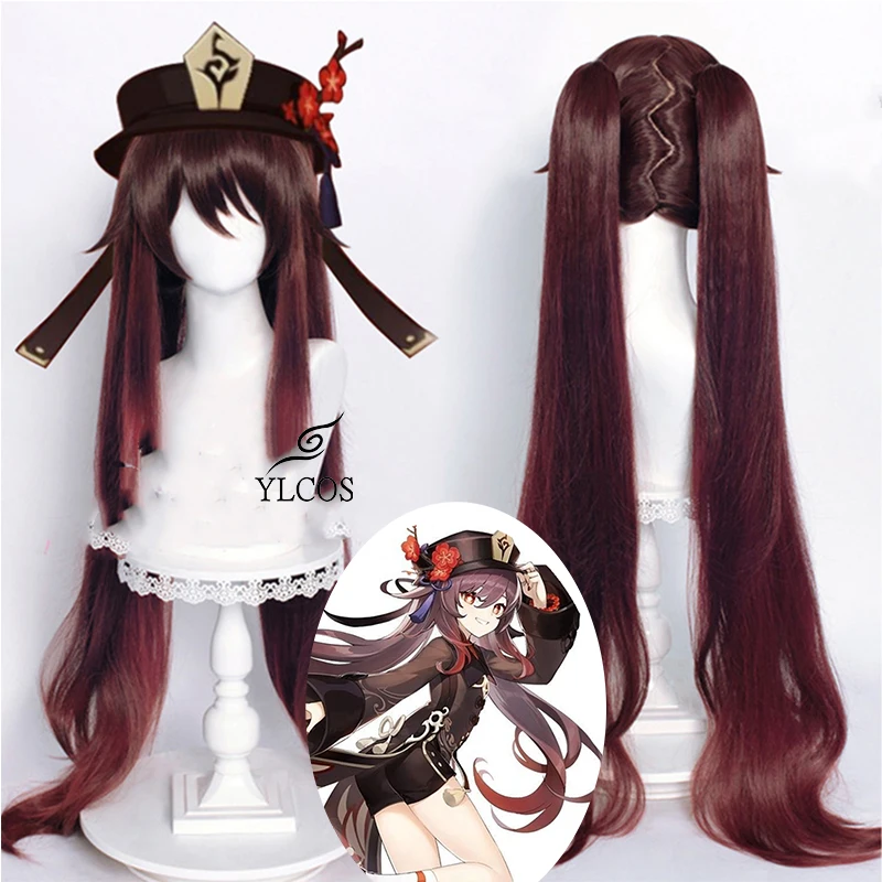 Парик для косплея Ху Тао из игры Genshin Impact, длина 110 см, аксессуары для костюма на Хэллоуин для унисекс