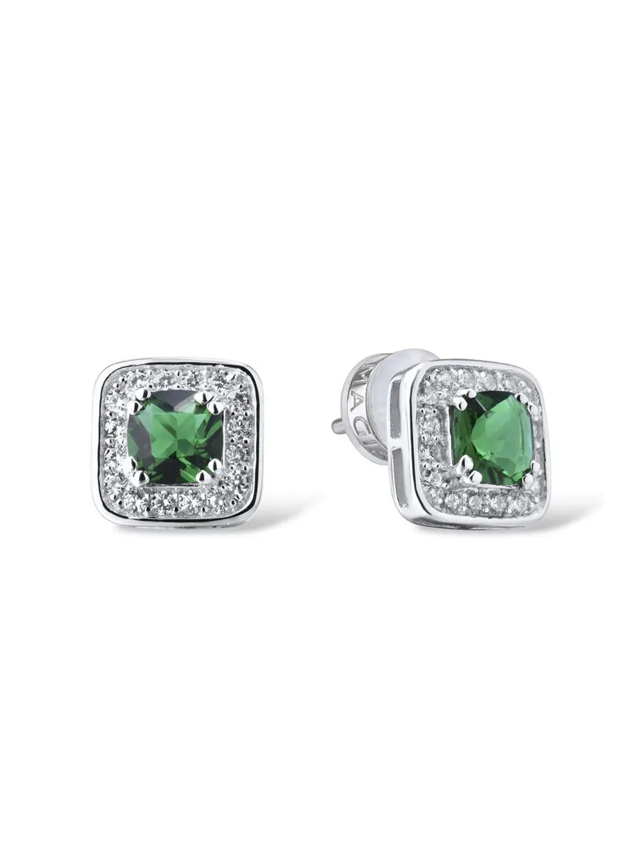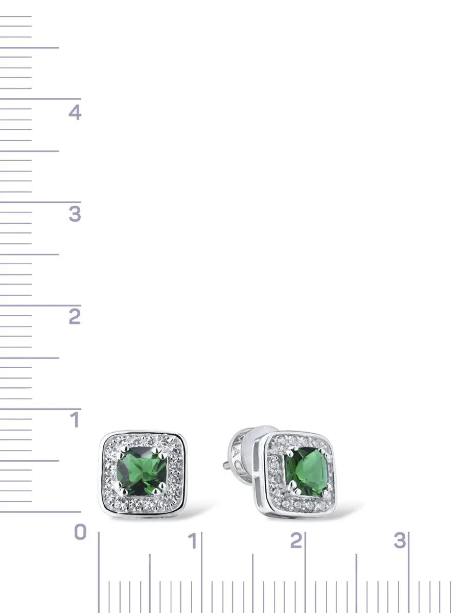 Серьги VALTERA пусеты с нано изумрудами и кубическим цирконием из серебра 925 пробы 117580 минимализм