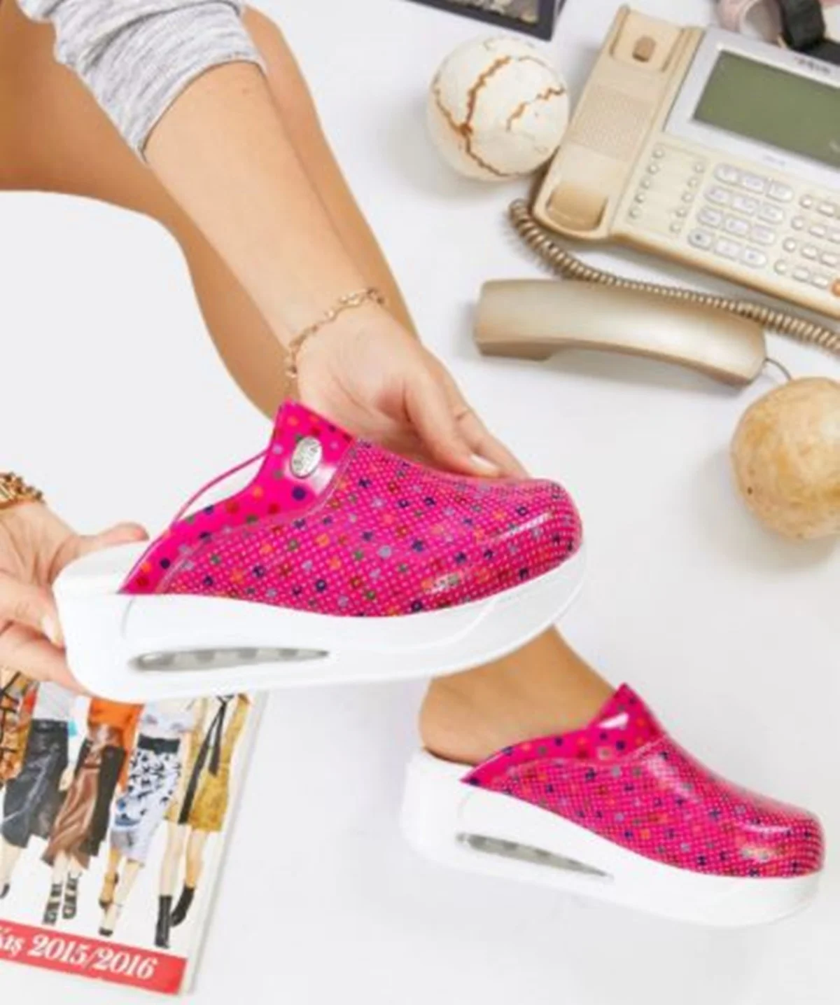 -Благодаря специальной нижней форме подошвы женская обувь не скользит по влажной поверхности.