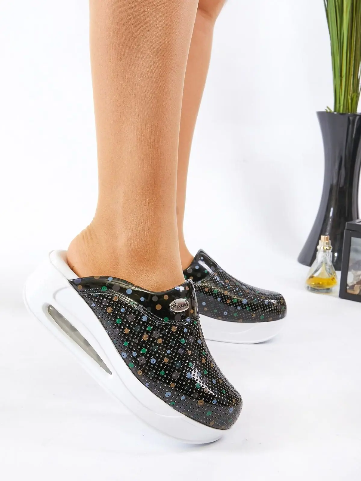 -Можно оценить структуру ТПУ и амортизирующую систему непосредственно с основной частью женской обуви sabo.