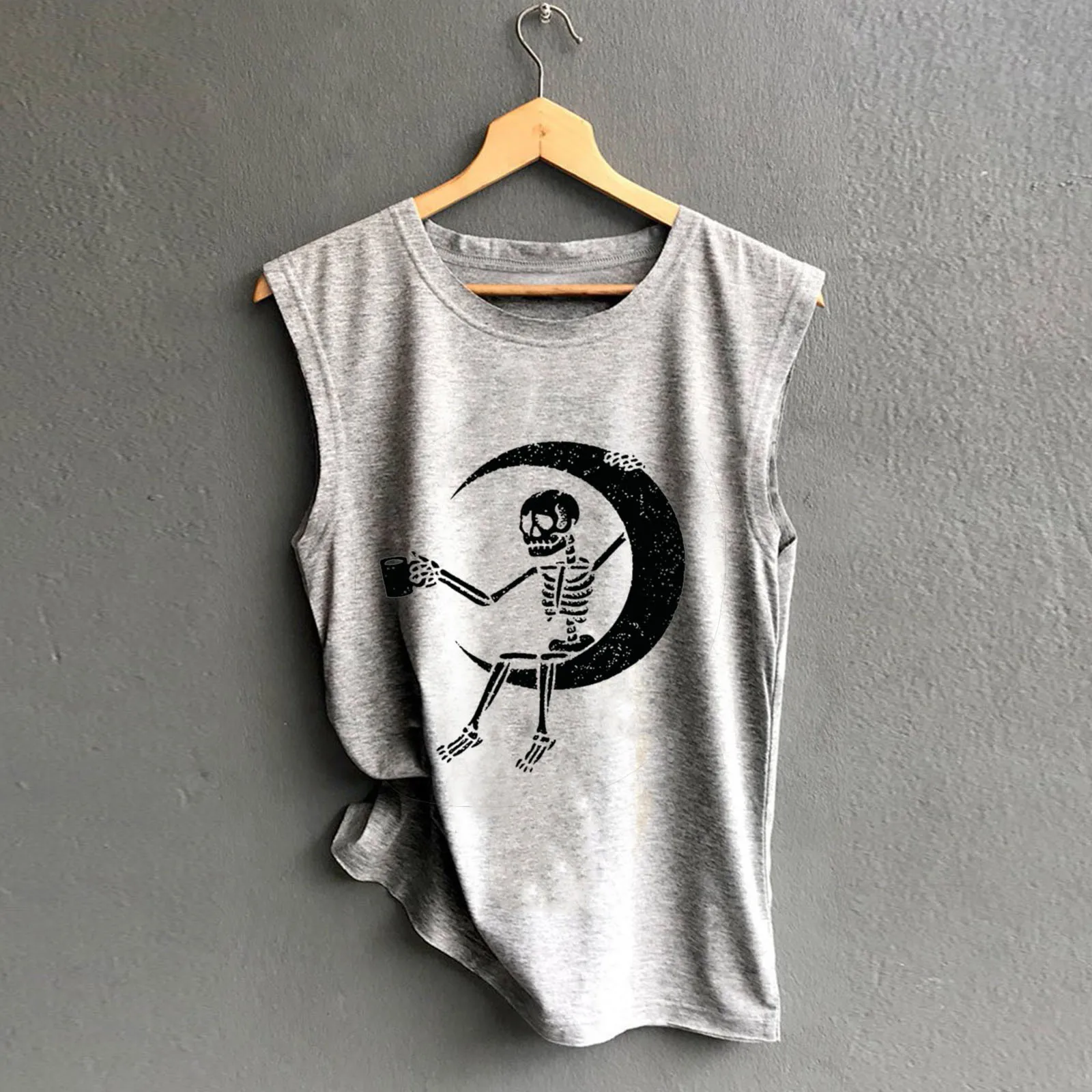 Майка женская в стиле Харадзюку, с принтом черепа и Луны, лето размера плюс